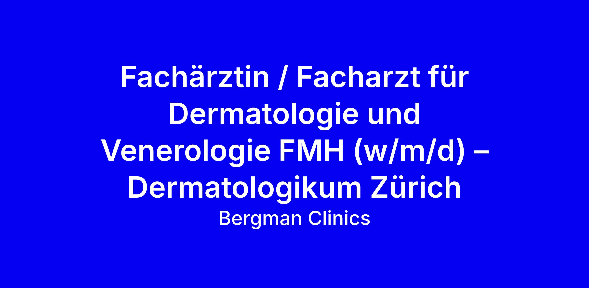 Fachärztin / Facharzt für Dermatologie und Venerologie FMH (w/m/d) am Dermatologikum Zürich bietet die Chance, eigenständig das gesamte dermatologische Spektrum zu betreuen, einschließlich Dermatochirurgie, Laseranwendungen und ästhetischer Behandlungen, in einem modernen Umfeld mit histologischem Labor. Zu den Aufgaben gehören Diagnostik, Therapie, interdisziplinäre Zusammenarbeit und die Sicherstellung einer hohen Patientenzufriedenheit. Ihr Profil: FMH-Titel Dermatologie und Venerologie, idealerweise FMCH Lasermedizin, mehrjährige klinische Erfahrung, ausgeprägte Patientenorientierung, Teamfähigkeit, strukturierte, eigenverantwortliche Arbeitsweise und unternehmerisches Denken. Wir bieten eine attraktive Vergütung mit Leistungsanteilen, keine Nacht- oder Wochenenddienste, gute Ferienregelung, ein unterstützendes Team und Entwicklungsmöglichkeiten innerhalb der Bergman Clinics. Bewerben Sie sich unter Sandra Pedrazzetti oder HR und betonen Sie Erfolge in Versorgung, Prozessoptimierung und ggf Weiterbildung von Assistenzärzten.