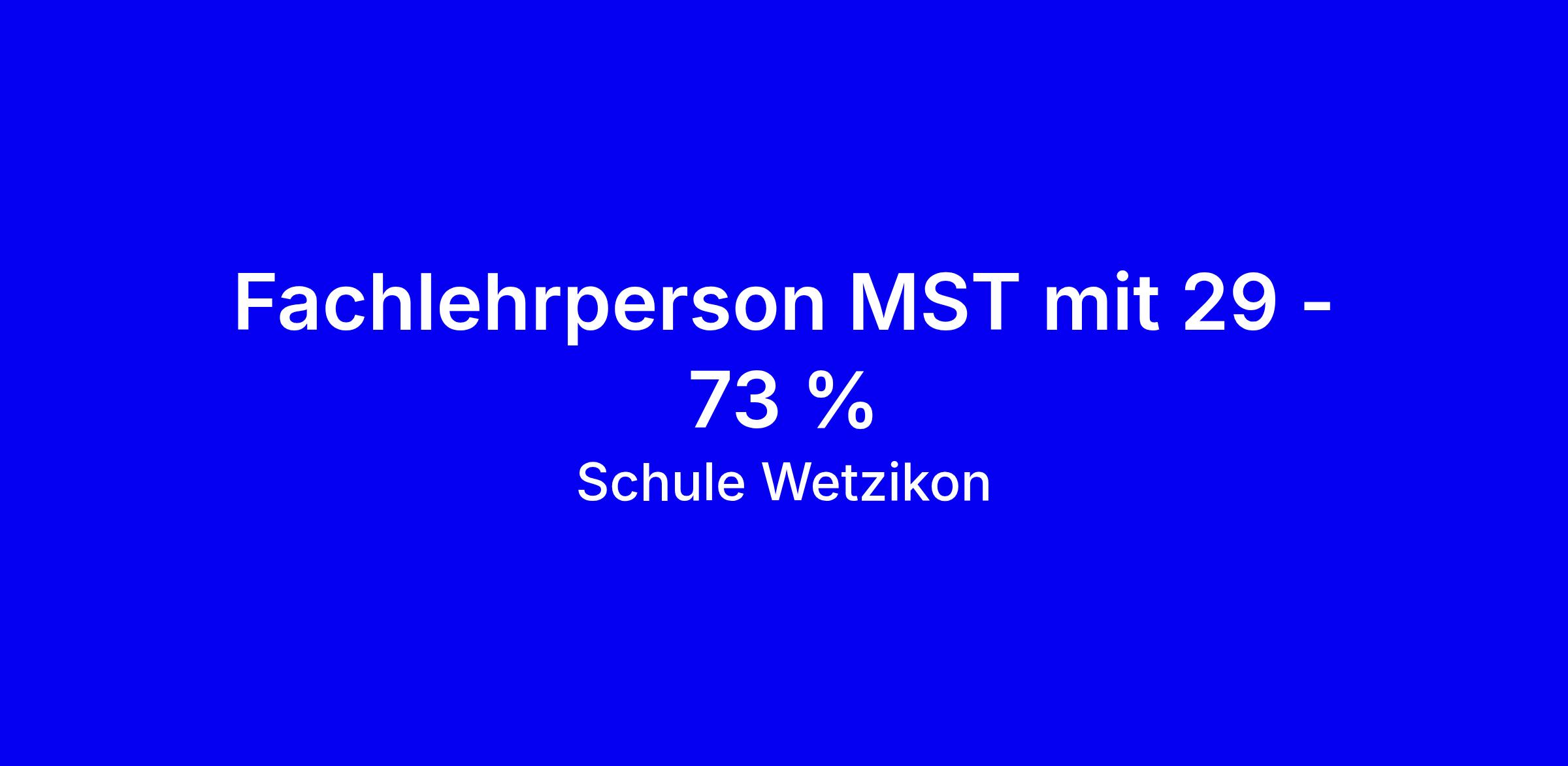 Eine Fachlehrperson MST mit 29 bis 73 Prozent an der Schule Feld in Wetzikon sucht ab dem Schuljahr 2026/27. Der Unterricht umfasst 8 bis 20 Wochenlektionen und erfolgt in zwei fünften Klassen onsite. Profil: zwingend Französisch und Englisch. Die Schule bietet eine vielfältige Schülerschaft, klare Strukturen und Freiraum für eigene Ideen, ein unterstützendes Team und gute Entwicklungsmöglichkeiten. Gesucht wird eine initiative Persönlichkeit, die ihr Fach mit Leidenschaft vermittelt, gern im Team arbeitet, Verantwortung übernimmt, neue Unterrichtskonzepte erprobt und offen sowie wertschätzend kommuniziert. Tipps für Ihre Bewerbung: Betonen Sie Ihre Mehrsprachigkeit, liefern Sie konkrete Praxisbeispiele und zeigen Sie Ihre Bereitschaft zur Zusammenarbeit. Fragen: Cornelia Battaglia, Co-Schulleitung, 079 366 44 84, [email protected]