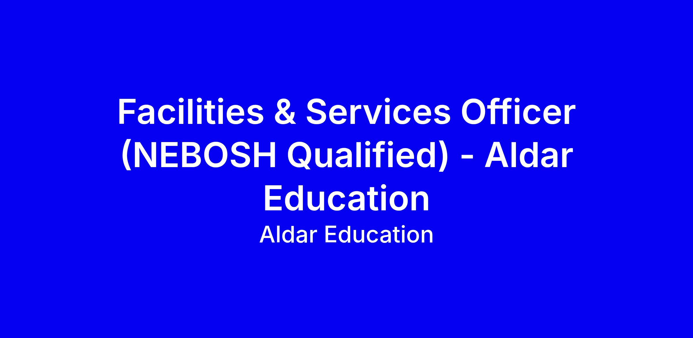 Aldar Education are looking to appoint a passionate and dynamic Facilities & Services Officer (NEBOSH Qualified) to join our thriving team.