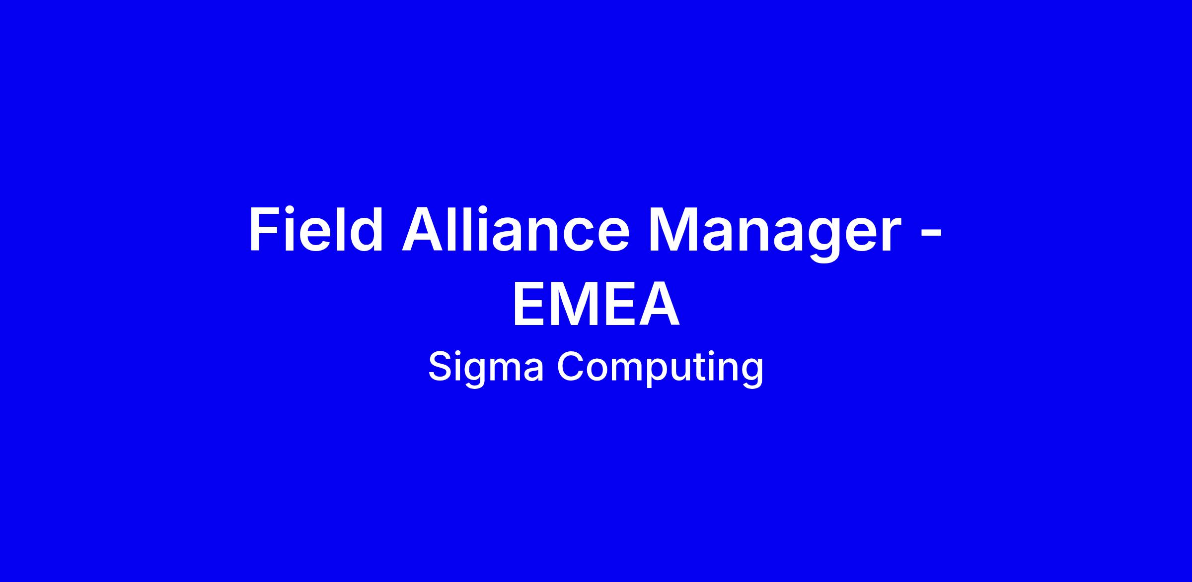 Sigma Computing is seeking a Sr Field Alliance Manager for EMEA to execute GTM initiatives with strategic technology partners, evangelize joint solutions, and drive programs that deepen co-sell referrals across the region. You'll partner with the GTM team, support events, host enablement and partner appreciation activities, co-own partner materials, and report on KPIs in Sigma for Sales and Partner management, while maintaining active rep collaboration in Slack. Ideal candidates have 4-7 years in sales or partnerships, a sales DNA, and a track record in cloud and data ecosystems, plus strong organization and collaboration. If you don’t meet every item, we still encourage you to apply; this is an on-site, full-time role in London.