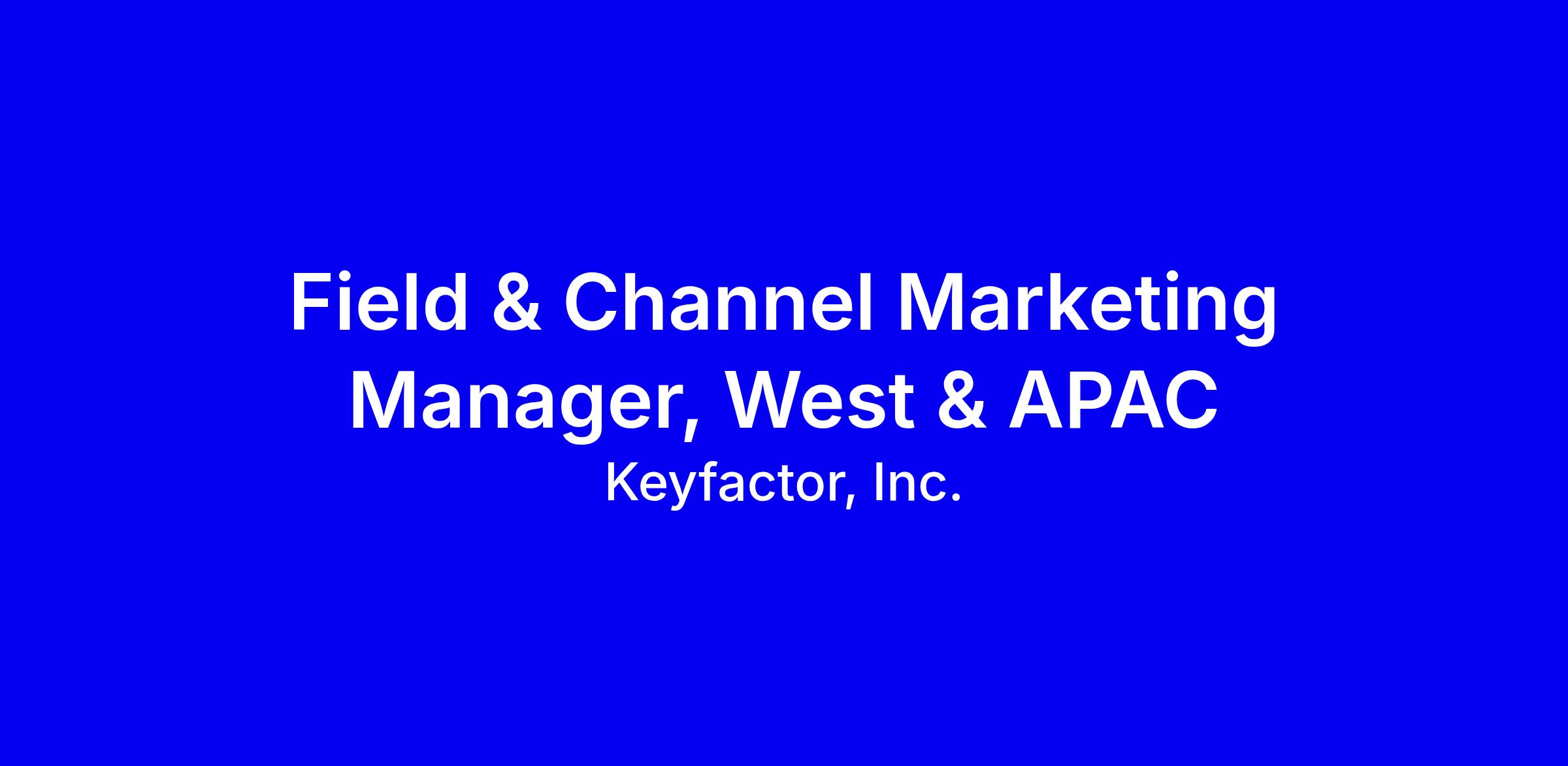 Keyfactor seeks a Field & Channel Marketing Manager for West and APAC to join the global marketing team and lead field and channel programs that accelerate pipeline and strengthen partner enablement. You’ll collaborate with Enterprise Sales, Channel Account Managers, and Marketing peers in Product Marketing, Brand and Digital to craft integrated plans, manage events, content, and enablement, and measure outcomes with Salesforce and Domo. The ideal candidate has 5+ years in B2B field and channel marketing, SaaS experience, superb cross functional collaboration, excellent communication, and strong project management with a metrics driven mindset. Competitive pay, US citizenship or permanent resident status required, remote in the US or Canada, up to 30 40% travel; tailor your resume to show partner led demand generation and measurable results.