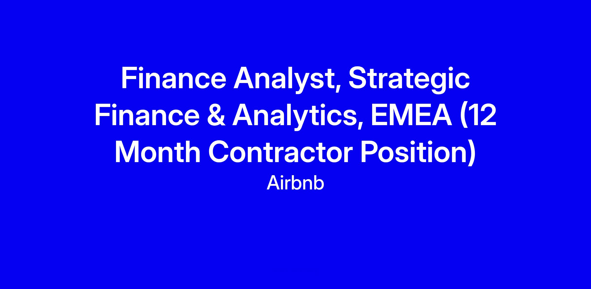 Airbnb is seeking a Finance Analyst, Strategic Finance & Analytics, EMEA to join the Strategic Finance & Analytics (SFA) team in EMEA. Our SFA team provides strategic planning, budgeting, reporting, and analytical decision-making support to cross-functional and business teams across Airbnb. The team covers key markets in Europe, Middle East and Africa ranging from emerging to mature growth. The team is focused on supporting the business to drive growth through data insights, KPI reporting, supporting investment cases and capital allocation.