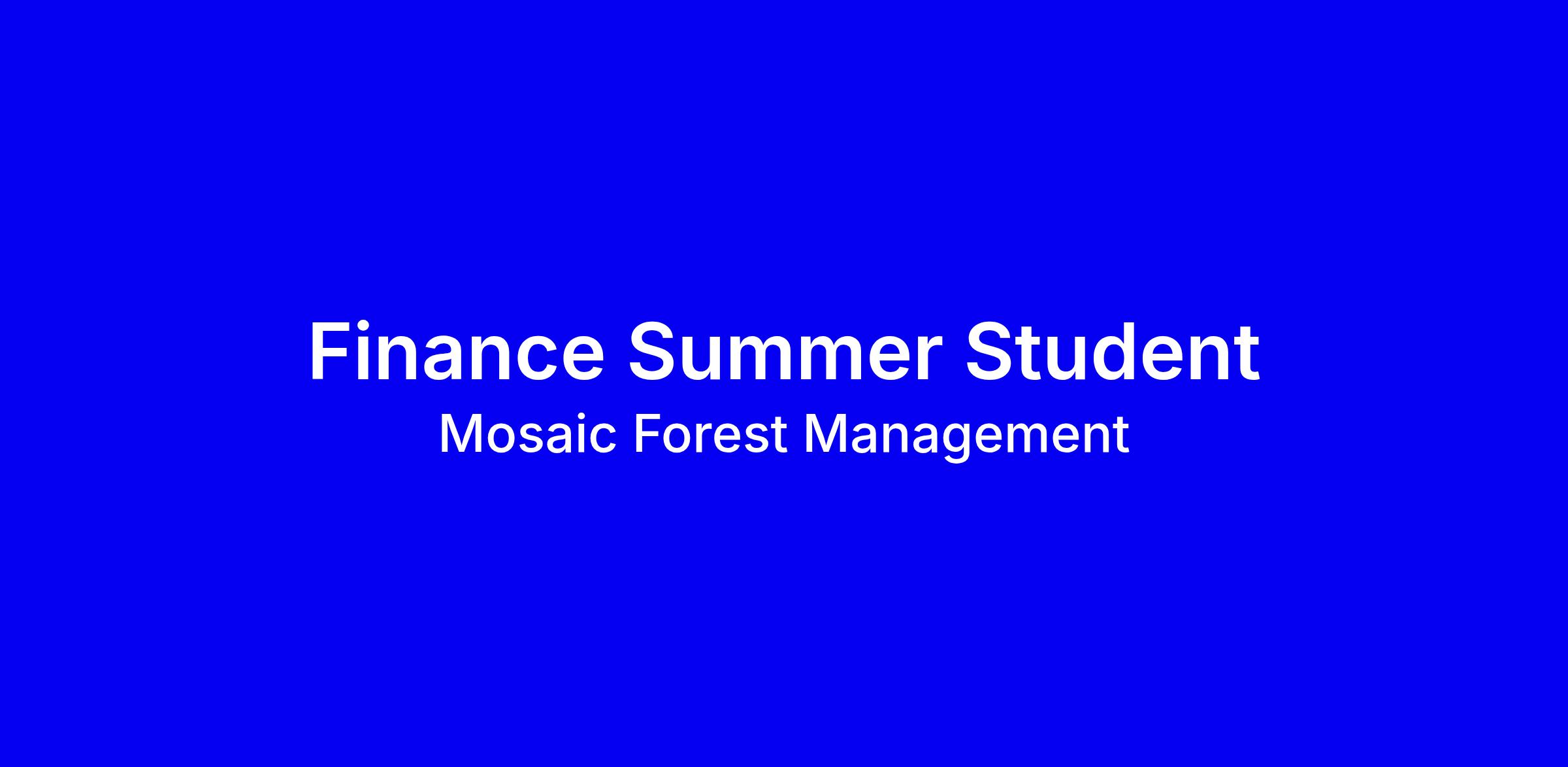 Finance Summer Student at Mosaic Forest Management is a full-time onsite role based in Nanaimo, BC for May 4 to August 28, 2026. You’ll gain hands on experience in finance with mentorship, supporting accounts payable and accounts receivable and learning Mosaic’s accounting systems while contributing your current knowledge. The ideal candidate is enrolled in a finance related degree or diploma, has completed at least one year of study, is proficient in Excel and Word, and thrives both independently and in teams. Tip: tailor your résumé to showcase Excel skills and any accounts payable/receivable exposure. Compensation is $23.75 to $27 per hour. Apply by February 20, 2026 at mosaicforests.com/careers, Job Opportunities. Mosaic values diversity and offers accommodations on request.