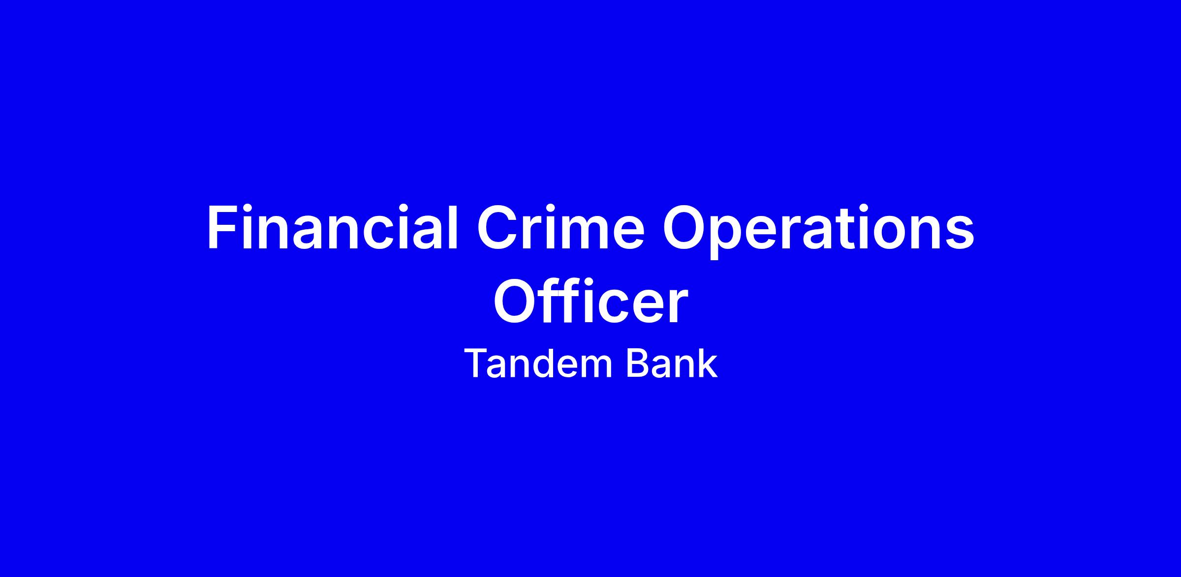 You will be working in the Financial Crime Operations (FC Ops) department, reporting Financial Crime Operations Assistant Manager. The department is in an exciting transformation phase, where FC Ops are creating a first line centralised function that will support all products offered by Tandem. This expansion will provide the successful candidate with opportunities to grow and develop as the department matures.