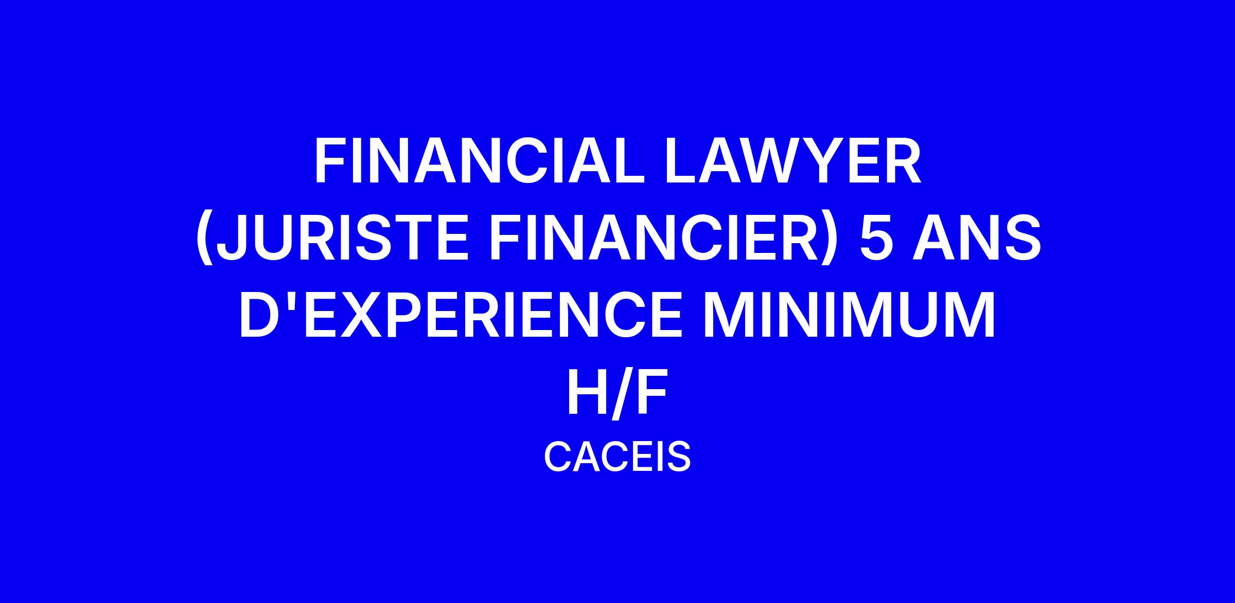 FINANCIAL LAWYER (JURISTE FINANCIER) 5 ANS D'EXPERIENCE MINIMUM H/F