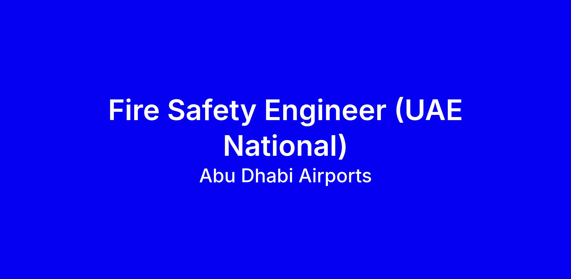 Abu Dhabi Airports is looking for a UAE National Fire Safety Engineer to champion fire and life safety across airport facilities, conducting fire safety engineering assessments and ensuring compliance with UAE Civil Defense, NFPA, GCAA, and the Abu Dhabi EHSMS framework. The role focuses on identifying risk, developing mitigations, and coordinating with design, construction, and authorities for certifications and inspections. Ideal candidates bring a bachelor’s in Fire Safety Engineering, 5+ years installing and maintaining fire systems, and familiarity with UAE Fire Code and NFPA standards; NEBOSH and professional memberships preferred. To apply, emphasize regulatory liaison experience, fire safety strategy work, AutoCAD and inspection-tool proficiency, on-site readiness, and Emiratization commitment.