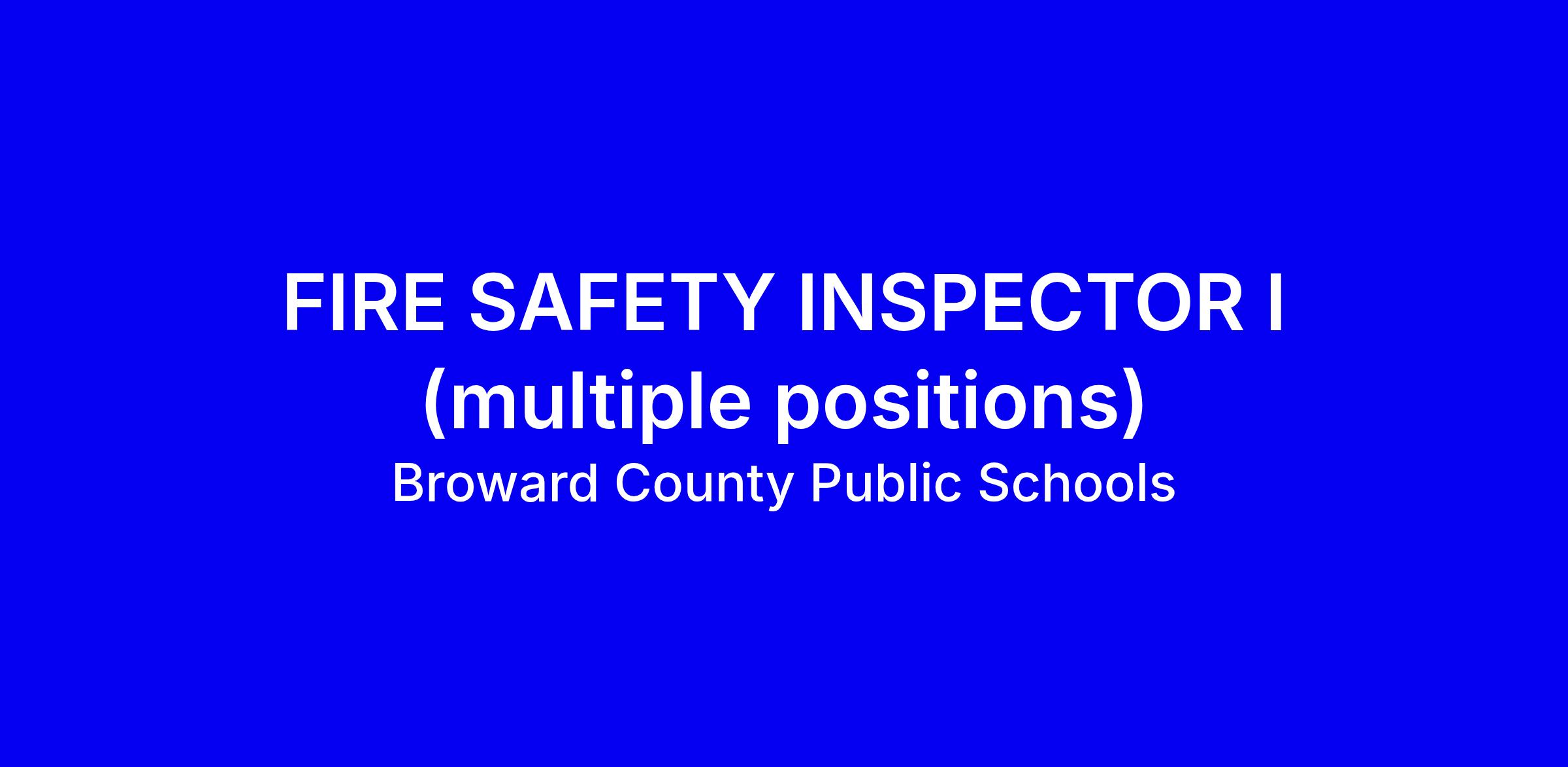 Broward County Public Schools seeks a Fire Safety Inspector I onsite in Oakland Park to reduce injuries by ensuring compliance with federal, state fire safety rules and SREF standards. The role inspects facilities countywide, identifies hazards, investigates injuries, approves event vendor plans, and supports safety with principals and maintenance staff. Requirements include a high school diploma or GED, four years in the field, current Florida Fire Safety Inspector certification within one year, and SREF inspection course completion; bilingual skills are a plus. Tips for applicants: tailor your resume to show SREF and incident investigation experience, inspection work, and collaboration with leadership. Review DD-107 and apply; 244-day calendar; BTU-TSP pay band 20.