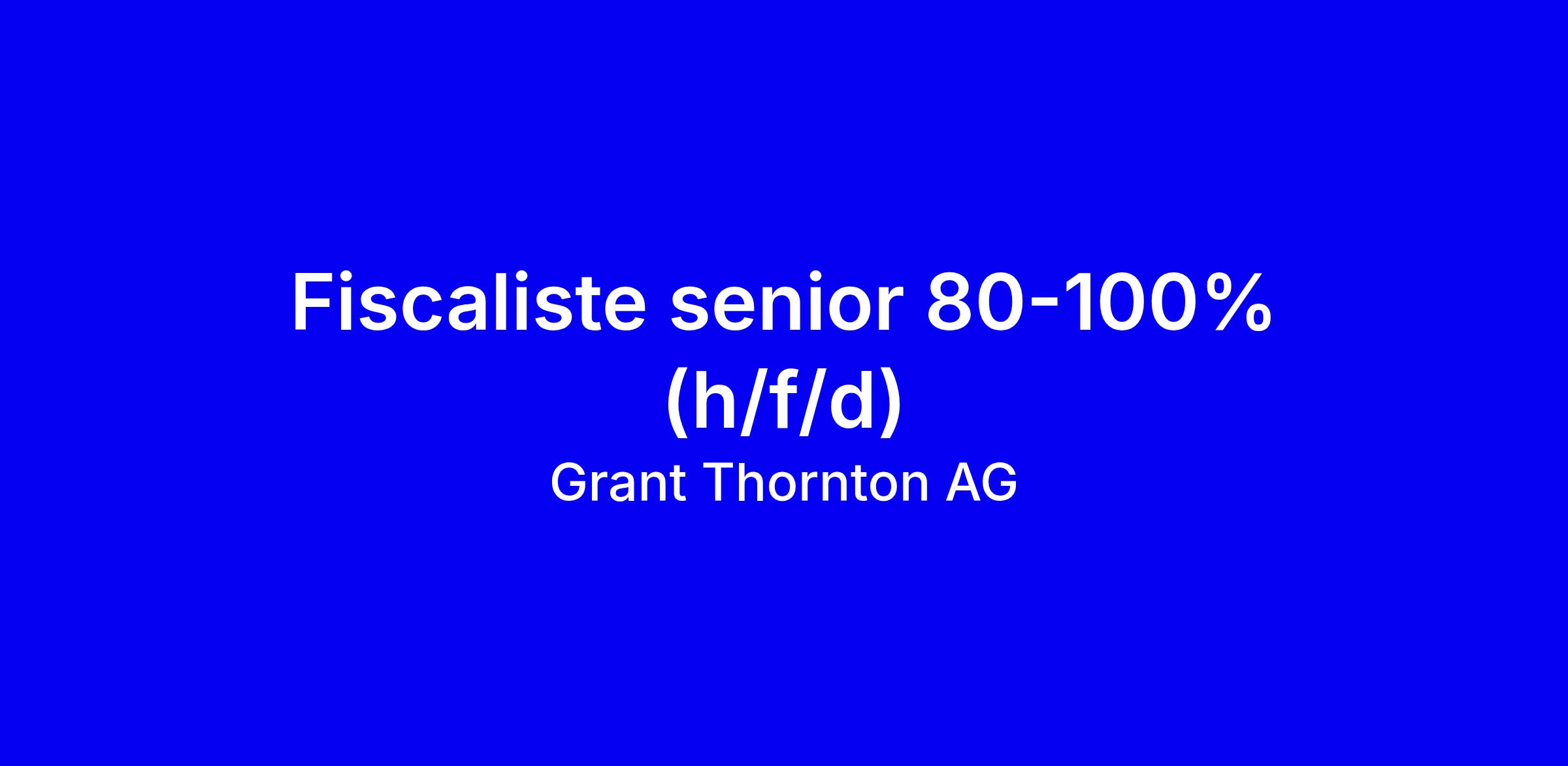 Grant Thornton Suisse/Liechtenstein recherche un fiscaliste senior 80-100 % à Genève, doté de 4 à 5 ans d’expérience en fiscalité (fiduciaire, Big4 ou équivalent) et d’un diplôme en droit ou économie. Vous assurerez la supervision et la préparation des déclarations pour personnes physiques et morales, dialoguerez directement avec les autorités fiscales et accompagnerez les clients lors d’audits, de due diligence et de projets divers. Vous contribuerez au développement du département en Suisse romande et travaillerez en étroite collaboration avec les managers et associés. Maîtrise parfaite du français et anglais courant, sens relationnel et esprit d’équipe indispensables. Pour postuler, adaptez votre CV à ce rôle, mettez en avant vos résultats clients et vos projets fiscaux, et postulez via le lien dédié, en soulignant votre disponibilité sur site à Genève et votre alignement avec l’offre flexible et orientée qualité de Grant Thornton.