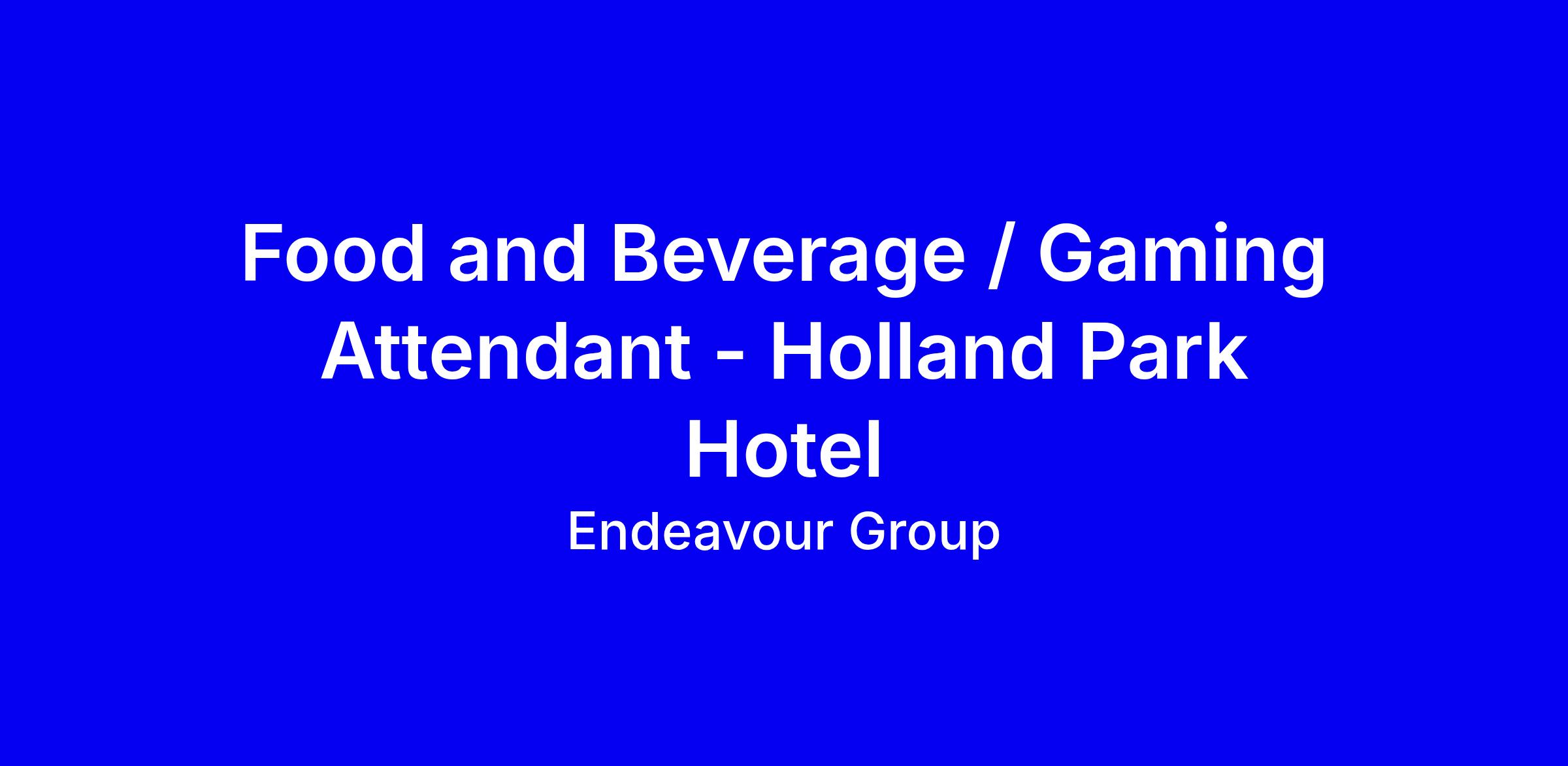 Endeavour Group is hiring energetic Food & Beverage and Gaming Attendants for the Holland Park Hotel after a major renovation. You must be over 18 with current RSA and RCG certificates and be available for a rotating roster, including days, nights, weekends and public holidays. This is a hands on role with lifting and stock movement, in a fast paced bistro style venue. The right candidate is a warm host who can upsell, deliver premium service, and make every guest visit memorable while supporting the gaming team when needed. To apply, tailor your resume to show RSA/RCG, flexible availability, teamwork, safety, and any gaming experience, and be prepared for due diligence checks like National Police Check.