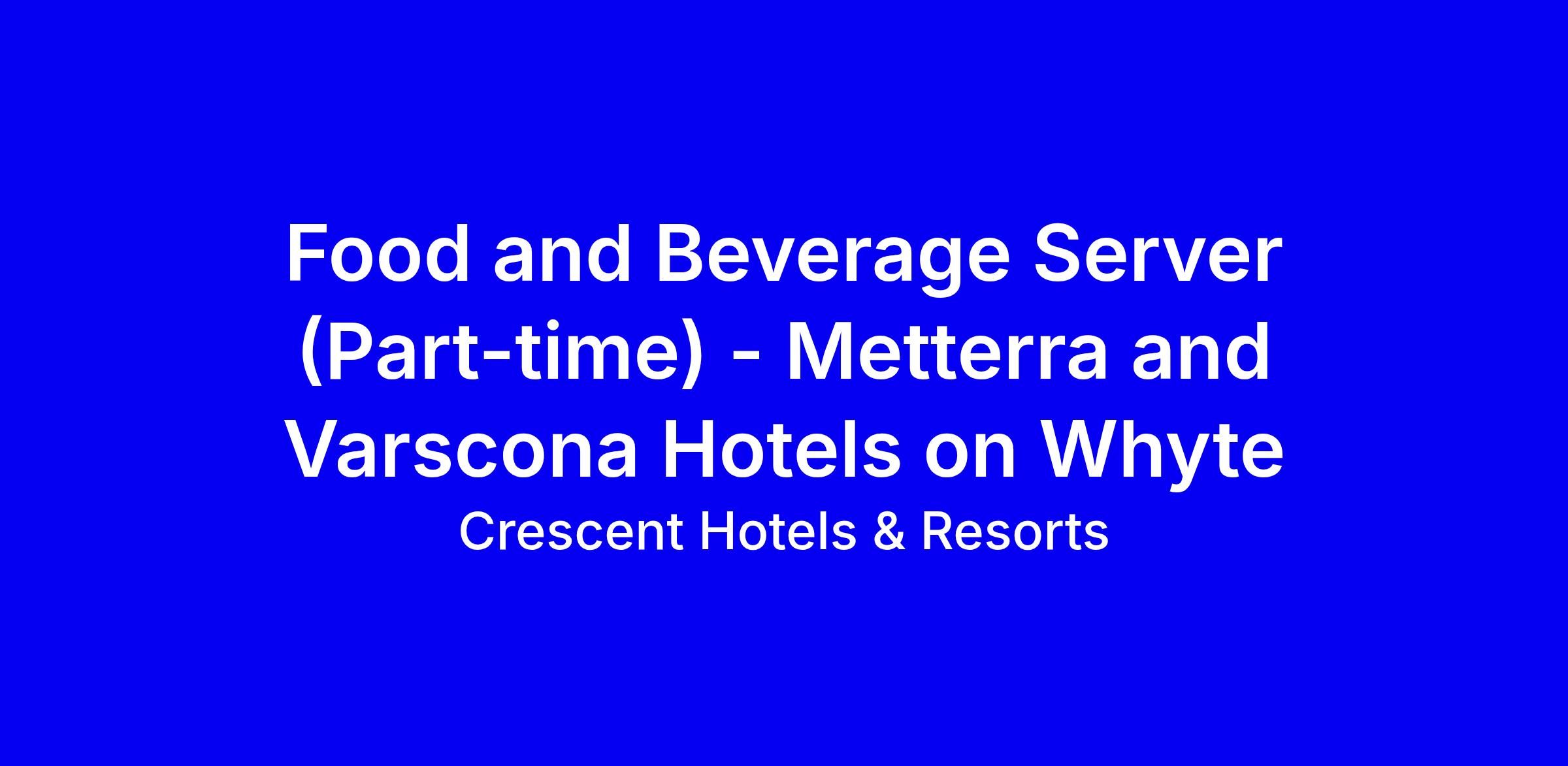 Metterra and Varscona Hotels on Whyte are seeking a part-time Food and Beverage Server to join Crescent Hotels & Resorts in Edmonton. The role centers on delivering exceptional service in Mett Lounge, the morning hospitality suite, and event spaces by taking orders, serving food and beverages, crafting cocktails, and helping set up or clean up after functions. We offer competitive wages, a strong benefits plan for eligible associates and family, flexible scheduling, travel discounts, and opportunities to grow with us. To stand out, demonstrate a guest-first attitude, thrive in a fast-paced team, and show relevant hospitality or events experience, with availability across days, evenings, and weekends and a collaborative mindset.
