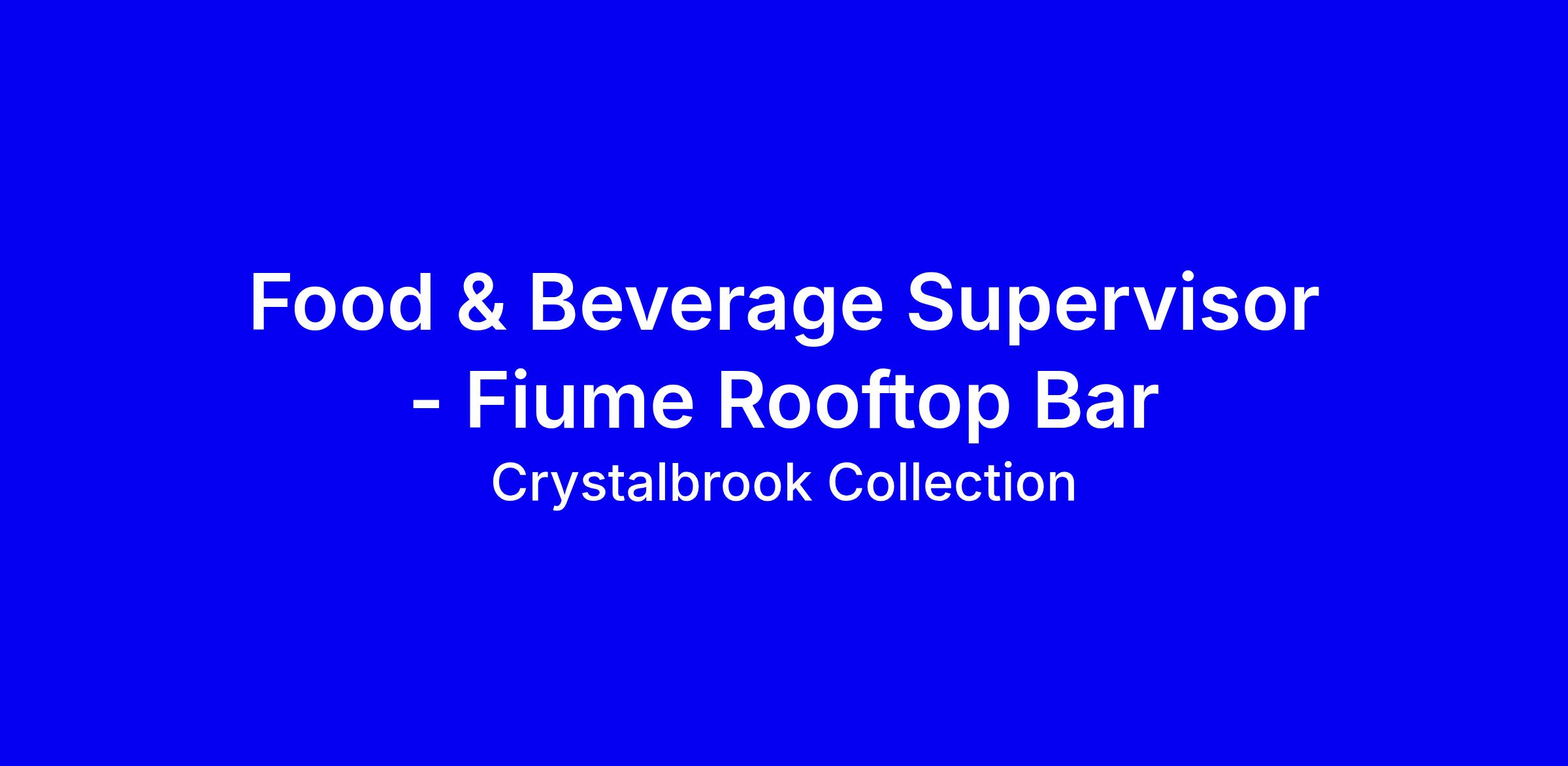 We are seeking a new Food & Beverage Supervisor to work alongside a passionate and supportive hotel team, reporting to the Venue Manager your passion is food, and you know your way around a drinks menu. You can’t wait to move up the ladder and you set an example for everyone in your team! You will assist in leading the dynamic team at Fiume rooftop bar and will create a dining experience that keeps our guest wanting more.