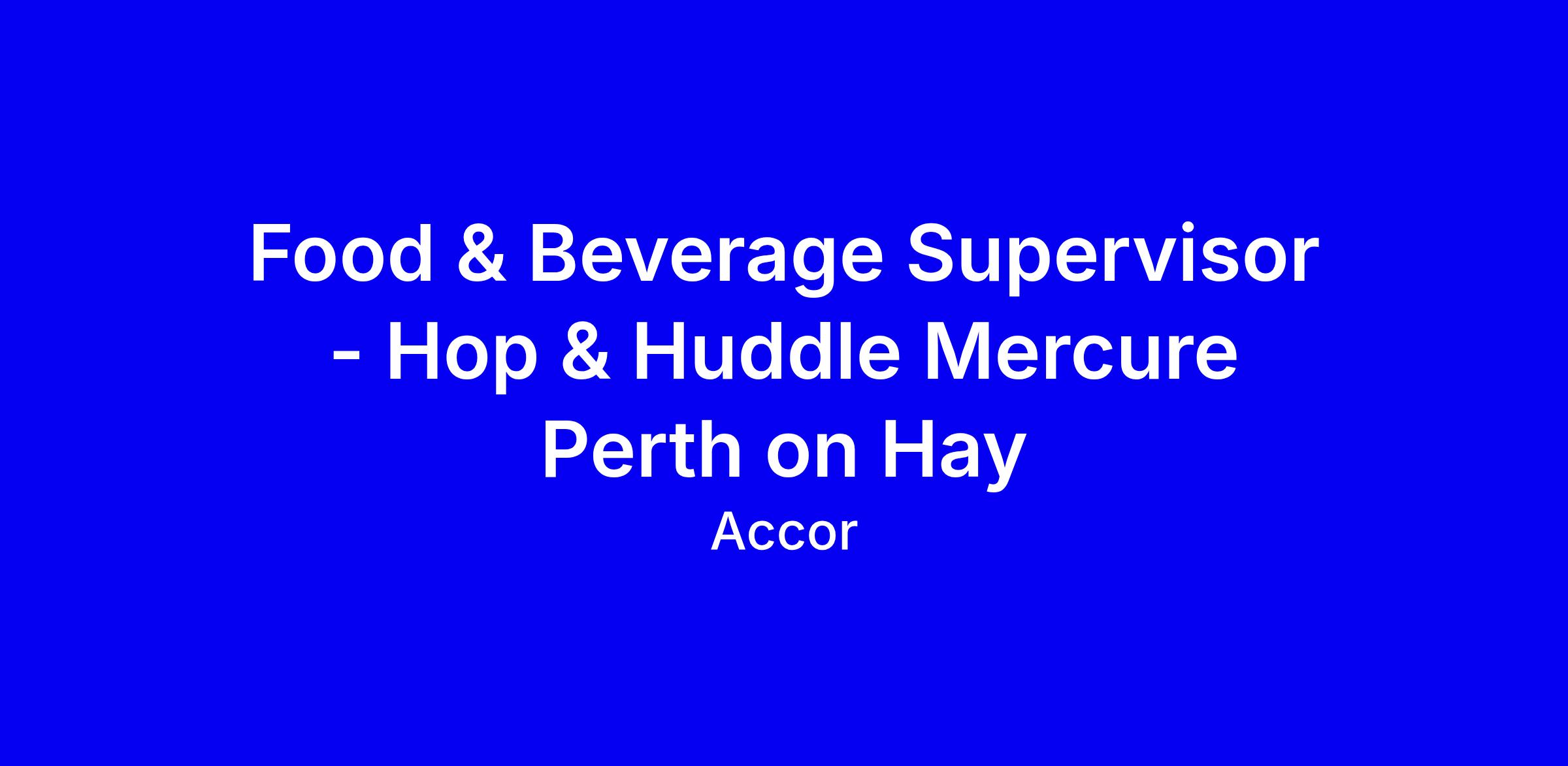 Looking to step up in hospitality? We’re on the hunt for a Food & Beverage Supervisor to join our awesome team at Mercure Perth on Hay.