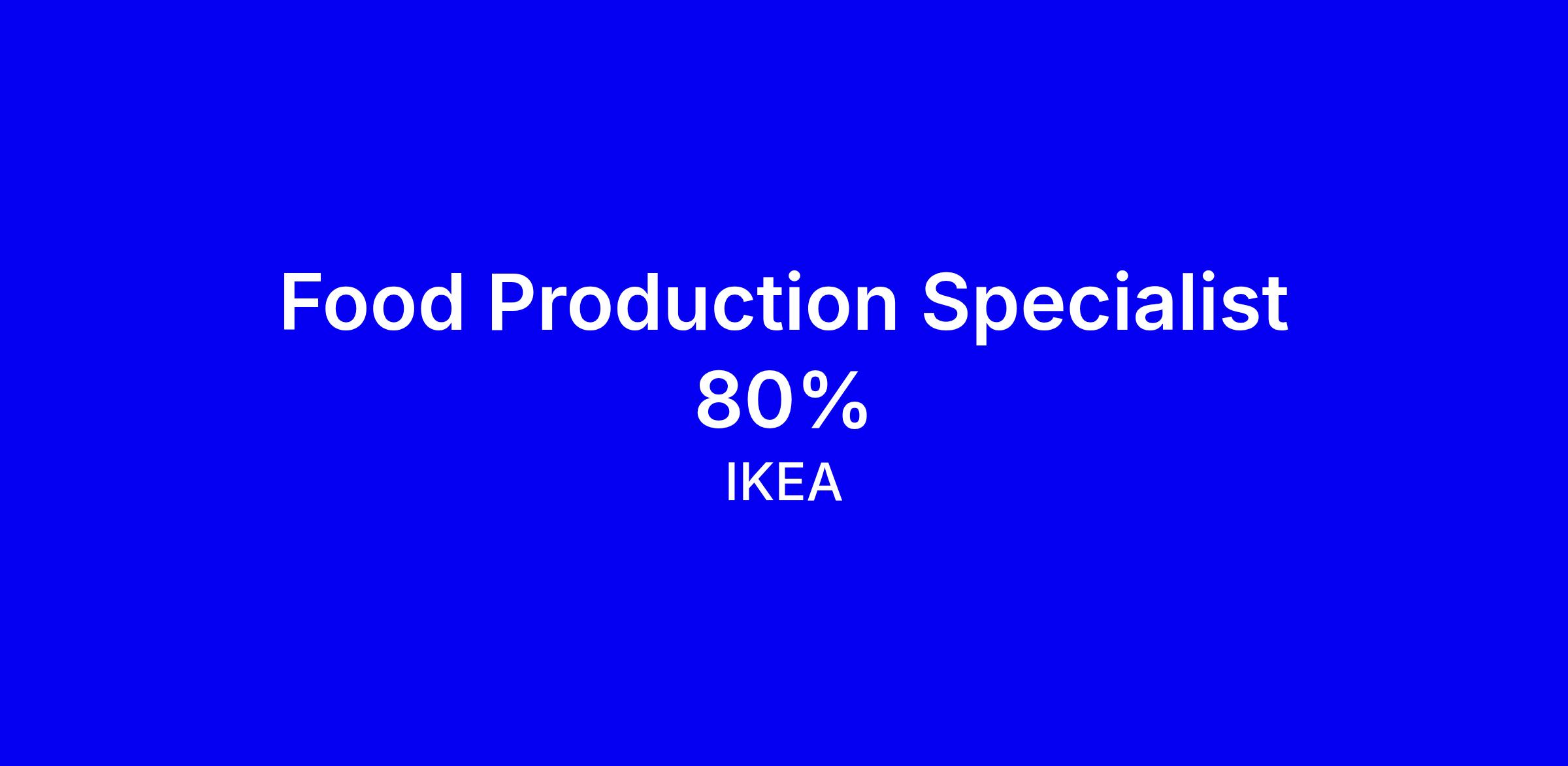 IKEA is seeking a Food Production Specialist (80%) for onsite part time permanent work in Riddes, in the Food & Restaurant department. You will support production, uphold quality and safety standards, and collaborate with a diverse team. The ideal candidate brings hands on production or kitchen experience, strong food safety knowledge, and proven reliability and teamwork. To apply, tailor your CV to highlight production or kitchen experience and safety credentials, and write a concise cover letter showing alignment with our values such as living our values and being your unique self, then submit before 2026-02-28. Demonstrate how you contribute to an inclusive workplace and how you stay engaged and motivated.