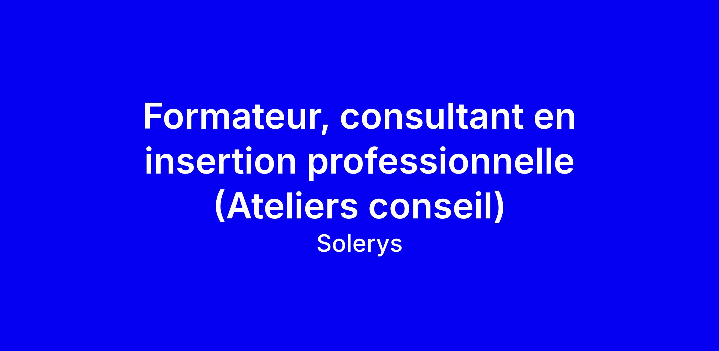 Solerys recherche un formateur, consultant en insertion professionnelle (Ateliers conseil) en CDD de 6 mois, temps plein, à Gonesse, pour animer les Ateliers Conseil France Travail (7 ateliers possibles, 6 heures ou 3 heures selon le format) en présentiel ou distanciel. Vous aiderez les bénéficiaires à construire leur trajectoire professionnelle en mobilisant leurs ressources et en valorisant leur expérience grâce à des méthodes actives adaptées au bassin de l’emploi. Profil: Bac+2/3 en RH ou insertion ou au moins 3 ans d’expérience en CIP ou formateur; maîtrise des techniques de formation des adultes et des outils NTIC et de l’animation à distance, langue anglais ou allemand ou espagnol un plus (niveau C2). Avantages: 37,5 h, primes, mutuelle, prévoyance et prise en charge partielle des transports. Pour postuler: adaptez CV et lettre en mettant en avant vos expériences d’accompagnement et d’animation, démontrez votre capacité à mobiliser un groupe et mentionnez la référence ca9304ff-3b03-4af1-9edb-f43de39ad583.