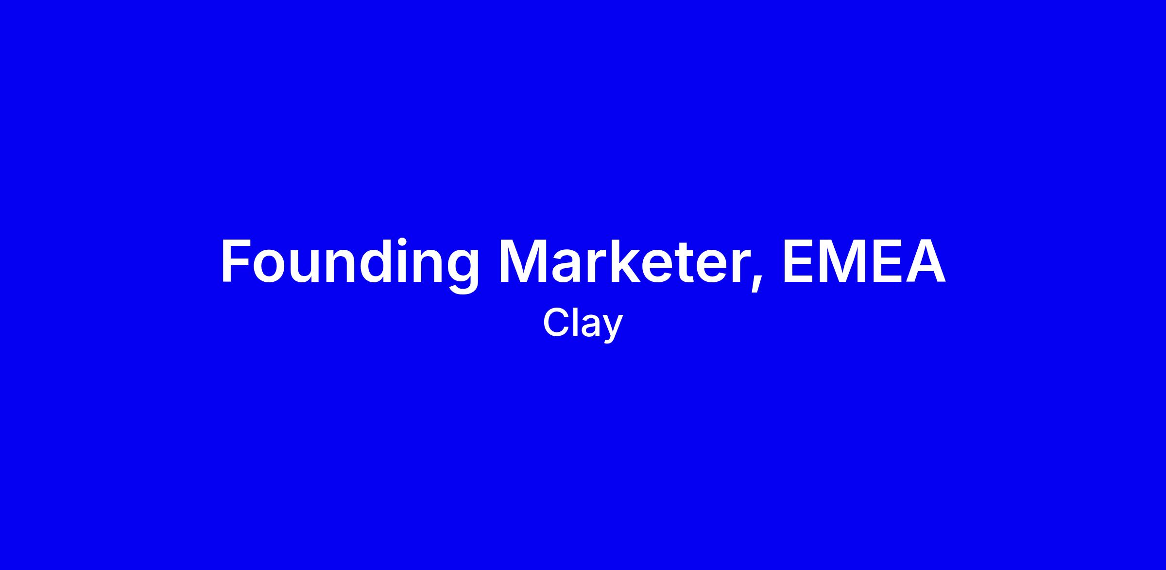 Clay is expanding into EMEA, and we're hiring our first Marketer in the region to establish our brand and drive revenue as we scale. You'll own foundational positioning and messaging for the market, while working in lockstep with sales to build enablement materials and demand generation that actually moves deals.