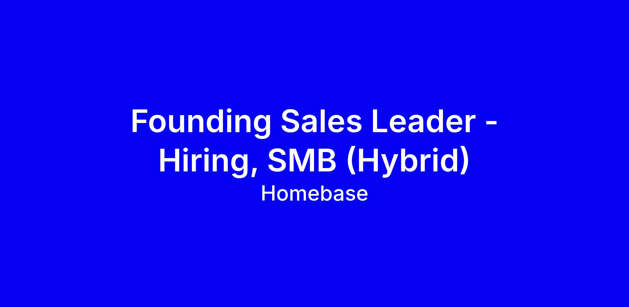 Homebase is seeking a founding Sales Leader in Toronto to launch and scale a high velocity SMB motion around our AI-powered hiring assistant, owning a one-call-close pipeline while building the Toronto pod. You’ll sell personally at first, define the operating system and dashboards, and hire and coach reps. Ideal candidates have 5-8+ years in B2B SaaS with 3+ years leading a sales team, a track record growing revenue to multi-million ARR, and a hands-on, player-coach approach with strong AI fluency. To apply, quantify impact with metrics, show the processes and tooling you introduced, and demonstrate cross-functional collaboration; emphasize willingness to be in-office Mon-Thu and your passion for repeatable revenue engines and winning together.