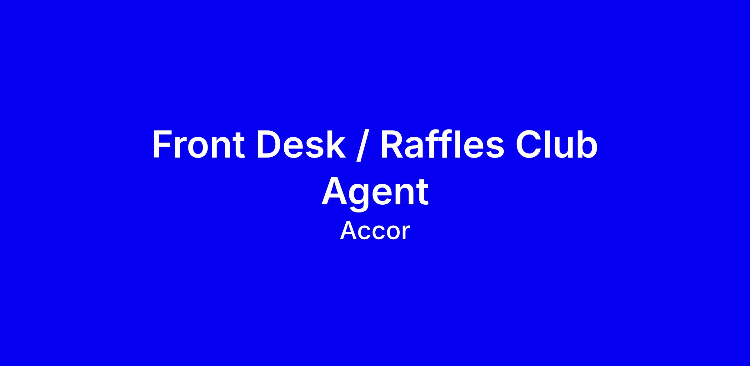 - Greet guests at all times in a friendly and helpful manner when entering Raffles Club or approach the Front Desk