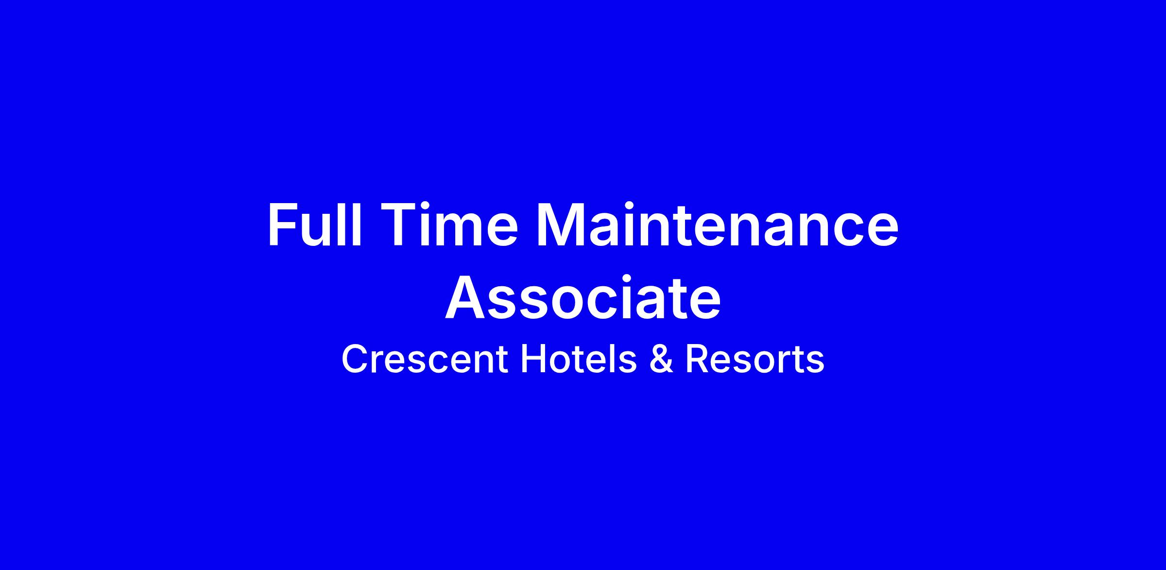 Join our vibrant team at Crescent Hotels & Resorts as a Maintenance Associate and play a crucial role in maintaining the high standards of our property. Apply now to become a part of our dynamic team!
