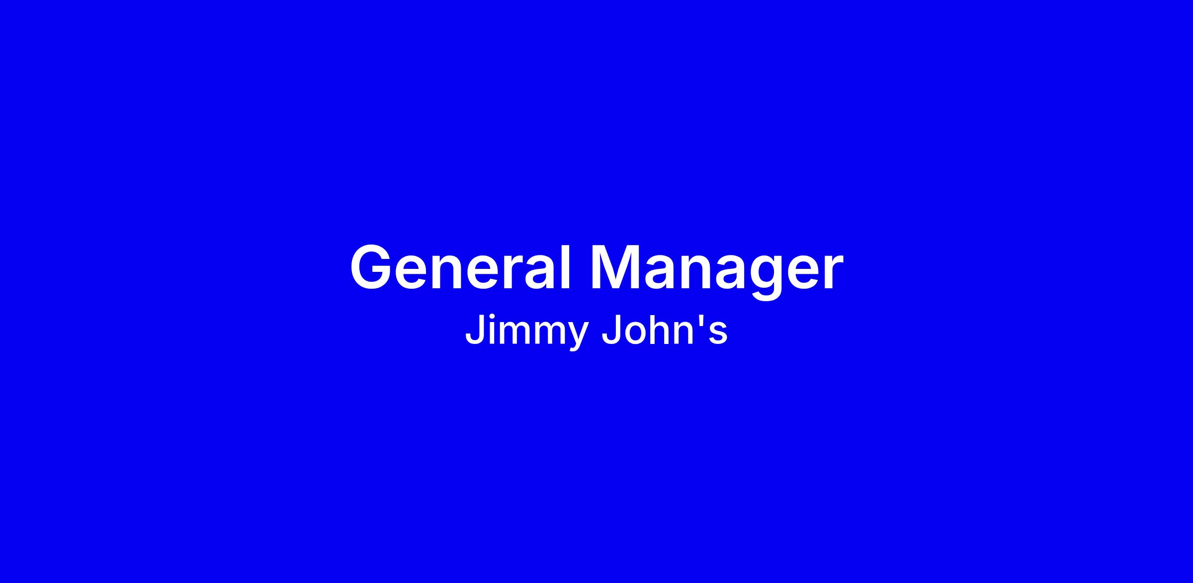 - Manage all functions of a Jimmy John’s restaurant to ensure exceptional customer service and high quality products are delivered, while ensuring restaurant profitability.