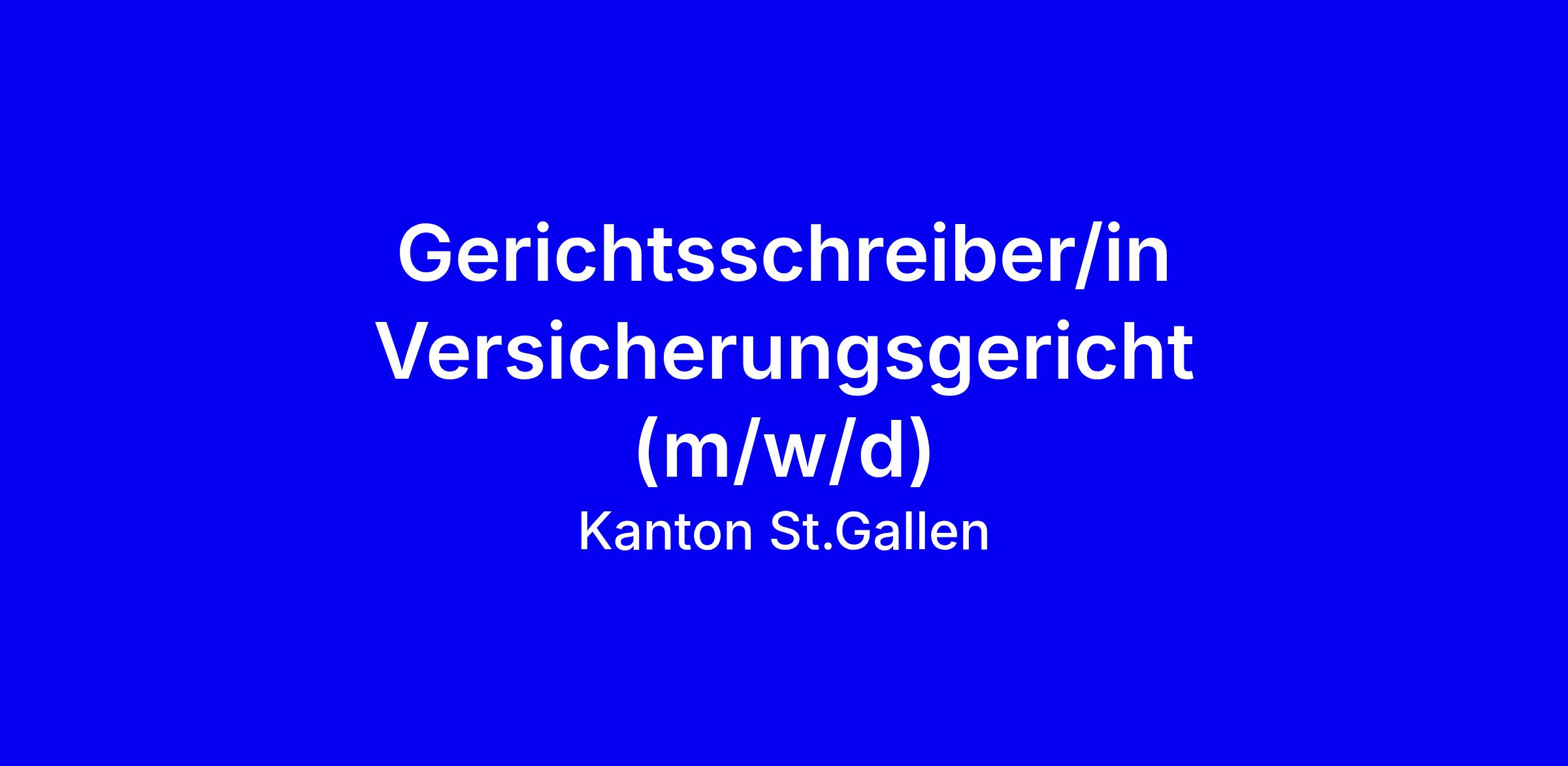 Die Versicherungsgericht des Kantons St. Gallen sucht per 1. Juni 2026 oder nach Vereinbarung eine/n Gerichtsschreiber/in Versicherungsgericht (80-100%, vor Ort in St. Gallen). Sie verfassen Urteilsentwürfe und redigieren Gerichtsentscheide, arbeiten eng mit der verfahrensleitenden Richterin oder dem Richter zusammen, bringen Antragsrecht ein und wirken an Beweisverfahren mit. Gewünscht ist ein abgeschlossenes juristisches Studium, idealerweise Berufserfahrung an einem Gericht, in der Rechtsabteilung eines Versicherers oder in der Advokatur, sowie Interesse am Sozialversicherungsrecht oder öffentlichem Recht. Sie verfügen über einwandfreie Deutschkenntnisse, redaktionelles Geschick, eine sorgfältige, strukturierte Arbeitsweise und Freude an kollegialer Zusammenarbeit. Wir bieten vielseitige Aufgaben, Austausch mit Richterinnen und Richtern, flexible Arbeitszeiten und Homeoffice an einem zentralen Arbeitsplatz. Fragen? Kontakt: Gerichtspräsidentin lic.iur. Christiane Gallati Schneider.