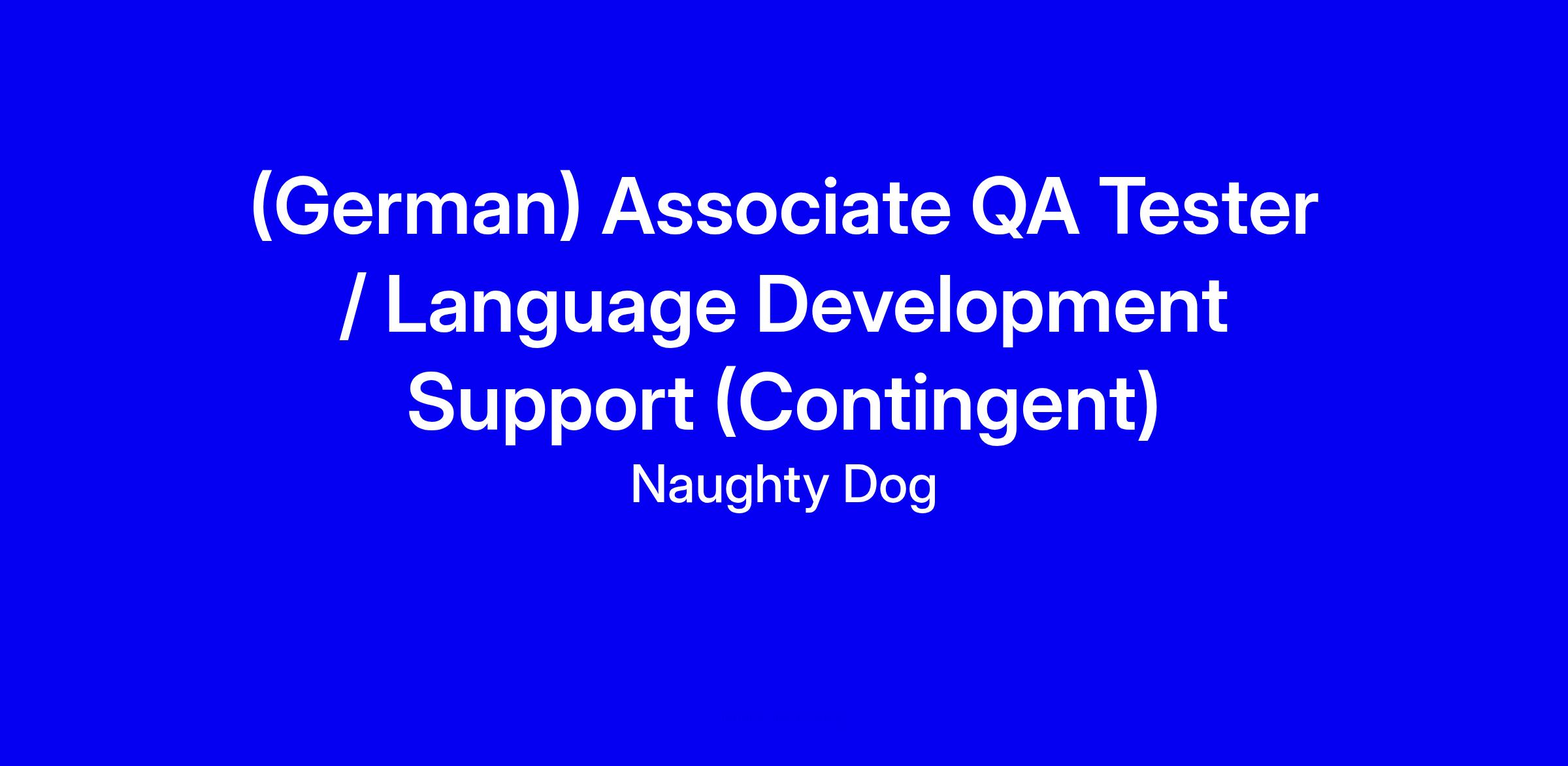 Naughty Dog is seeking a motivated and detail-oriented individual to join our team as an Associate Quality Assurance Tester/Language Development Support, specializing in German. This role is integral to ensuring the high quality and cultural accuracy of our game content for German speaking audiences. The ideal candidate will have a passion for gaming, strong communication skills in both German and English, and a keen eye for detail.