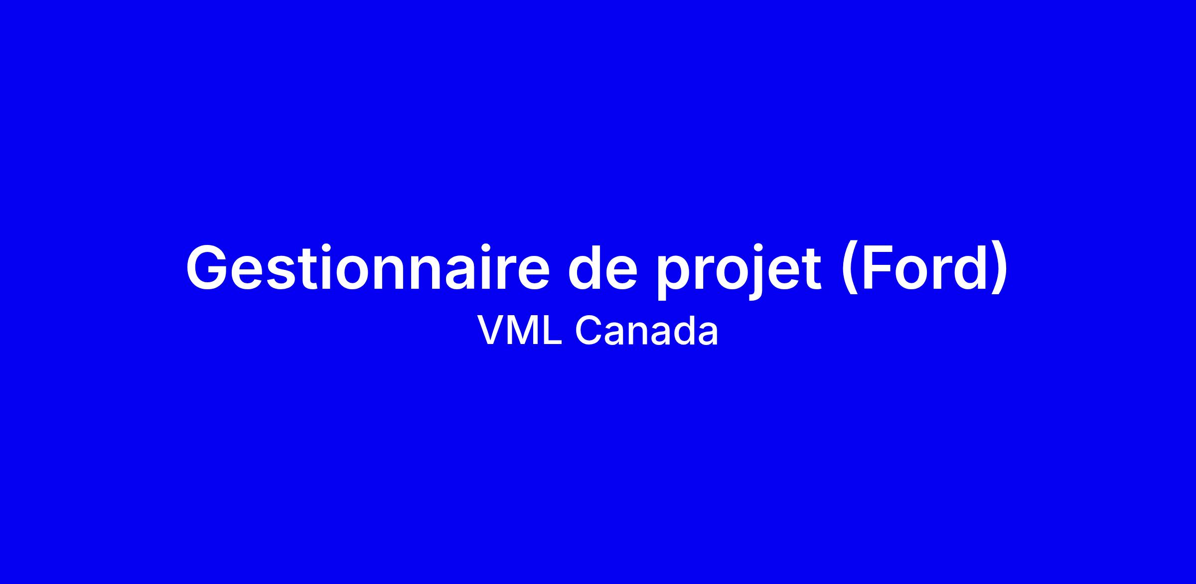 VML Canada est à la recherche d’un·e gestionnaire pour soutenir l’équipe de détail de Ford Canada à Toronto. Il s’agit d’un poste intermédiaire idéal pour un·e gestionnaire de projet engagé·e qui sait s’épanouir dans une agence où l’environnement est dynamique et intégré, et qui aime donner vie à des projets multicanaux complexes.