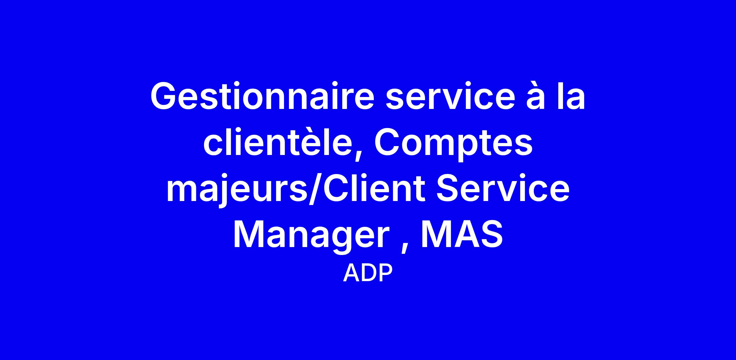 ADP est à la recherche d'un chef de service expérimenté. Le titulaire de ce poste aide les clients à tirer profit des solutions d'entreprise exceptionnelles d'ADP, de sorte qu'ils peuvent se concentrer sur ce qui compte le plus pour eux : la croissance de leur entreprise.