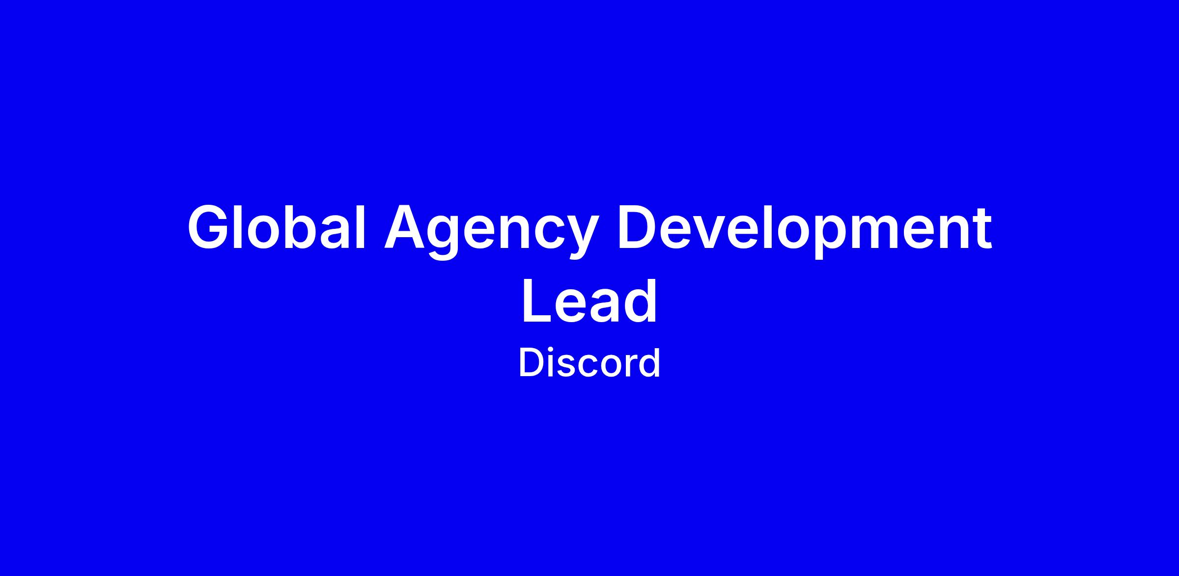 We are seeking a Global Agency Development Lead to join our Advertising Team. As a Founding Member of the Agency team, this newly created role will transform our agency partnerships by establishing Discord as the essential platform for reaching engaged, high-intent audiences across international markets. You'll work at the strategic level to maximize yield from agency partnerships, building executive relationships across major holding companies, and negotiating/executing enterprise partnerships to drive incremental demand.