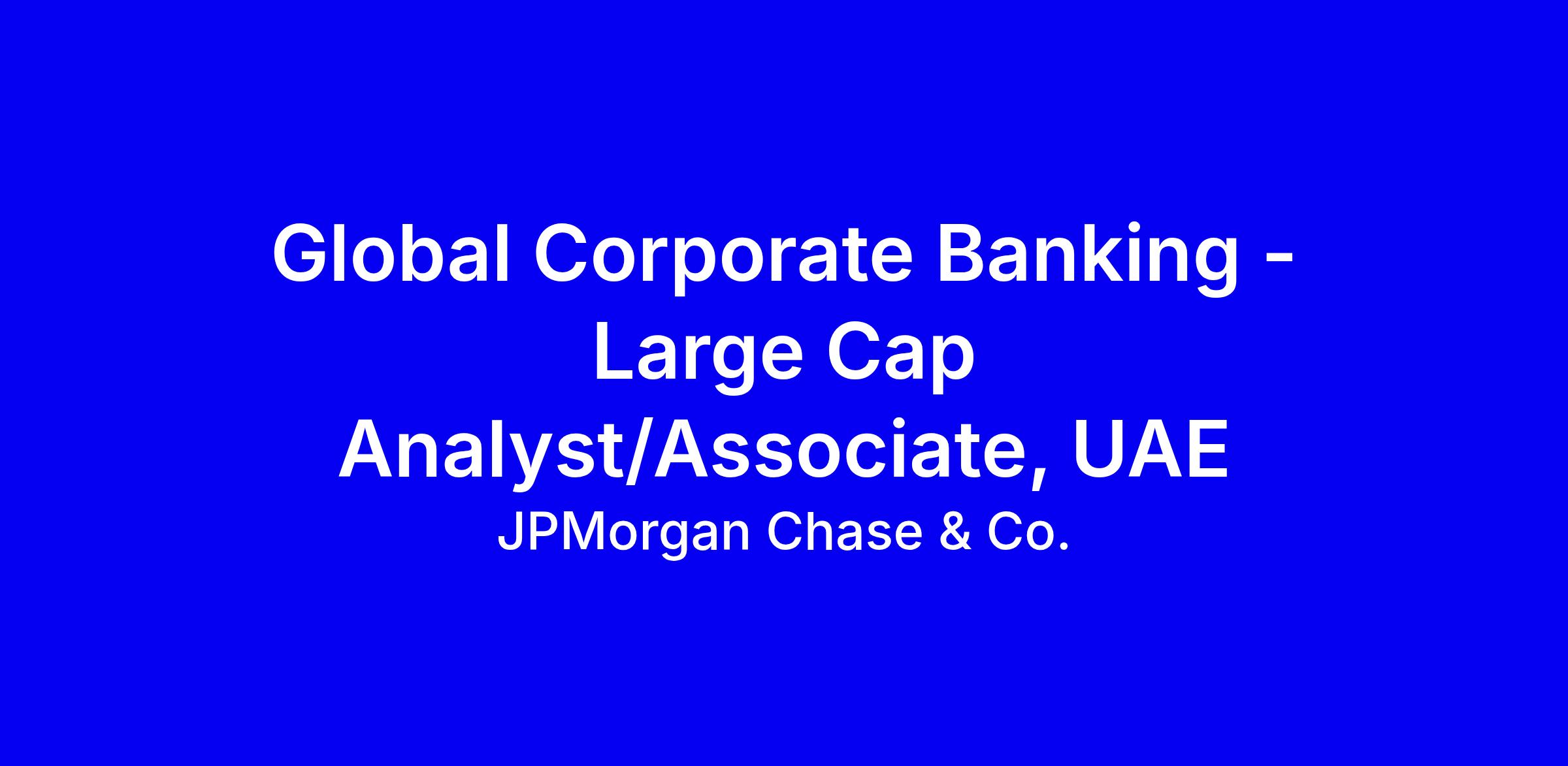 JPMorgan Chase is seeking an Analyst or Associate in Global Corporate Banking Large Cap, UAE, based in Dubai, full-time on-site. You will help grow the Large Cap corporate banking book by leveraging an international network to deliver solutions from a global perspective, build relationships, perform industry and credit analysis, and assist in preparing pitch books to win revenue. Responsibilities include client onboarding, presenting credit cases, maintaining credit quality, and supporting country level reporting. Key requirements are fluency in English, relevant corporate or IB experience, strong finance and modeling skills, and excellent Excel and PowerPoint. To apply, tailor your CV to UAE large cap clients, quantify impact, show cross functional collaboration, and highlight your client-focused, proactive delivery mindset.