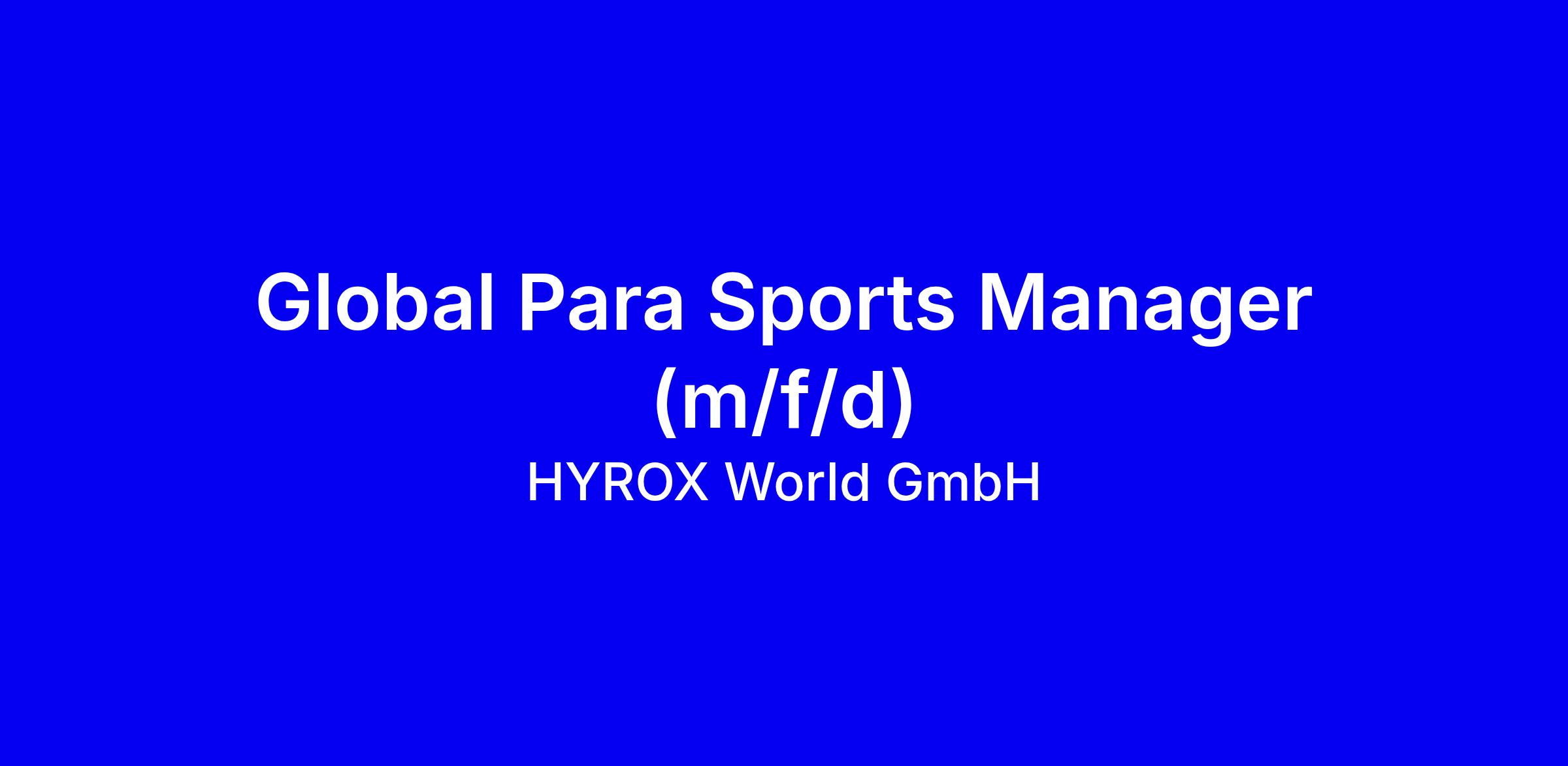 HYROX is looking for a Global Para Sports Manager to own strategic governance of classification systems, eligibility criteria, and policy frameworks, ensuring seamless alignment with Olympic and Paralympic structures and full integration across HYROX markets. The role centers on professionalizing ParaSports at scale, creating robust pathways for developmental and high‑performance tiers, securing partnerships with Paralympic bodies and federations, and driving inclusive athlete storytelling. The ideal candidate has proven ParaSports leadership, governance expertise, and a track record of scaling programs globally, plus strong cross‑functional collaboration and communication. To apply, tailor your CV to demonstrate measurable impact, answer the form questions, and submit the PDF; English is essential, other languages a plus, and your contact person is Isabelle.