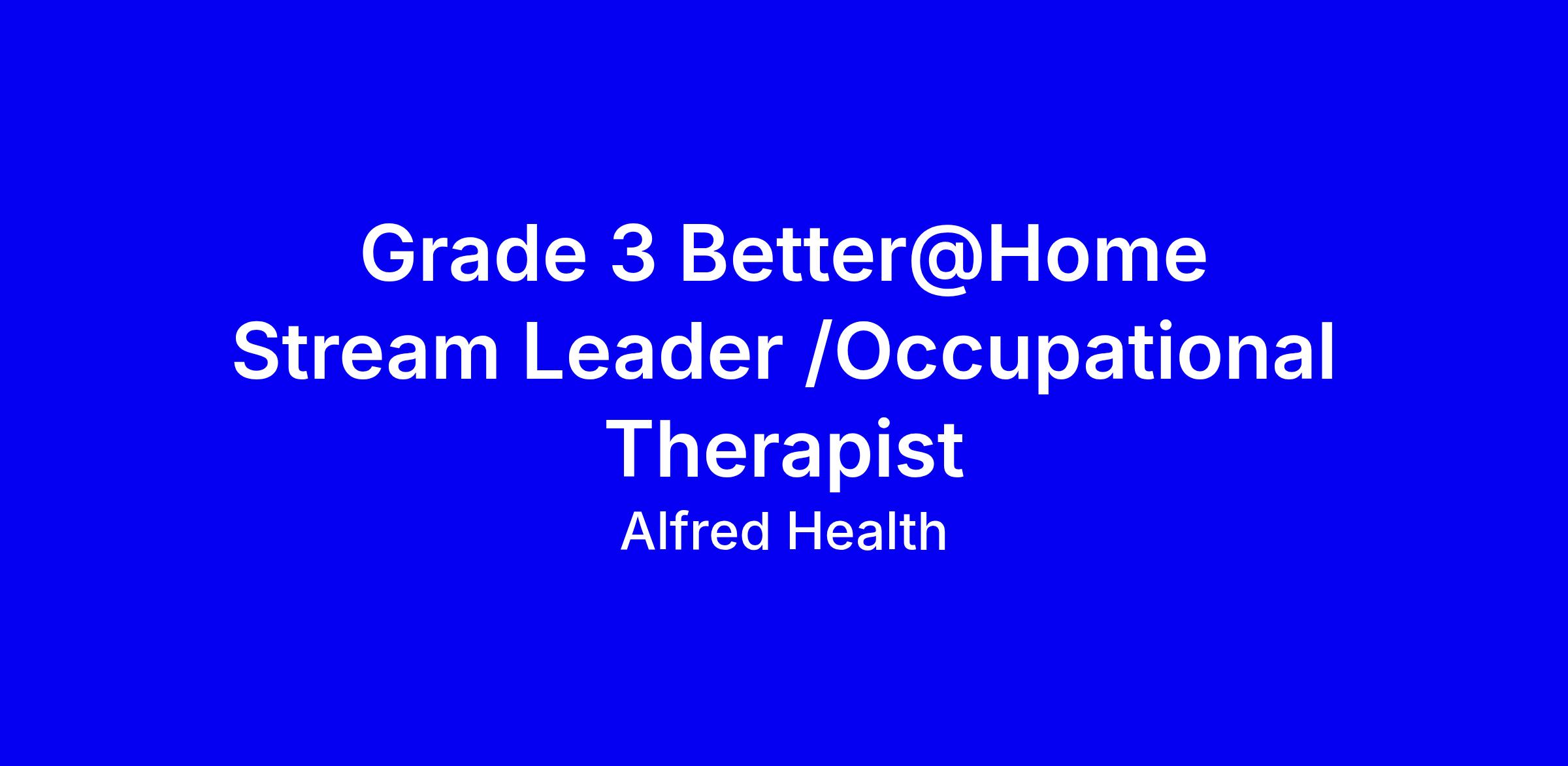 We have an exciting opportunity for experienced occupational therapist to join the Alfred Health Occupational Therapy Better@Home team as a Grade 3 stream leader.