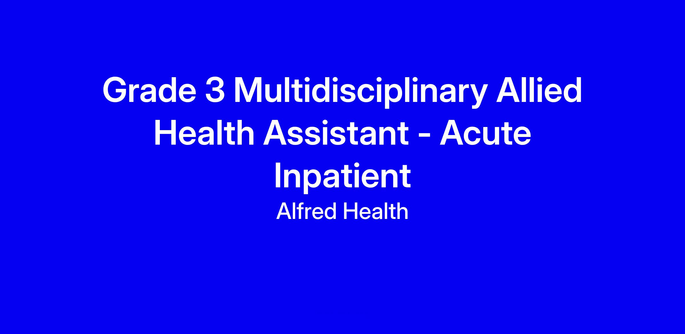 An exciting opportunity to join our Multidisciplinary Allied Health Assistant Department at Alfred Health!