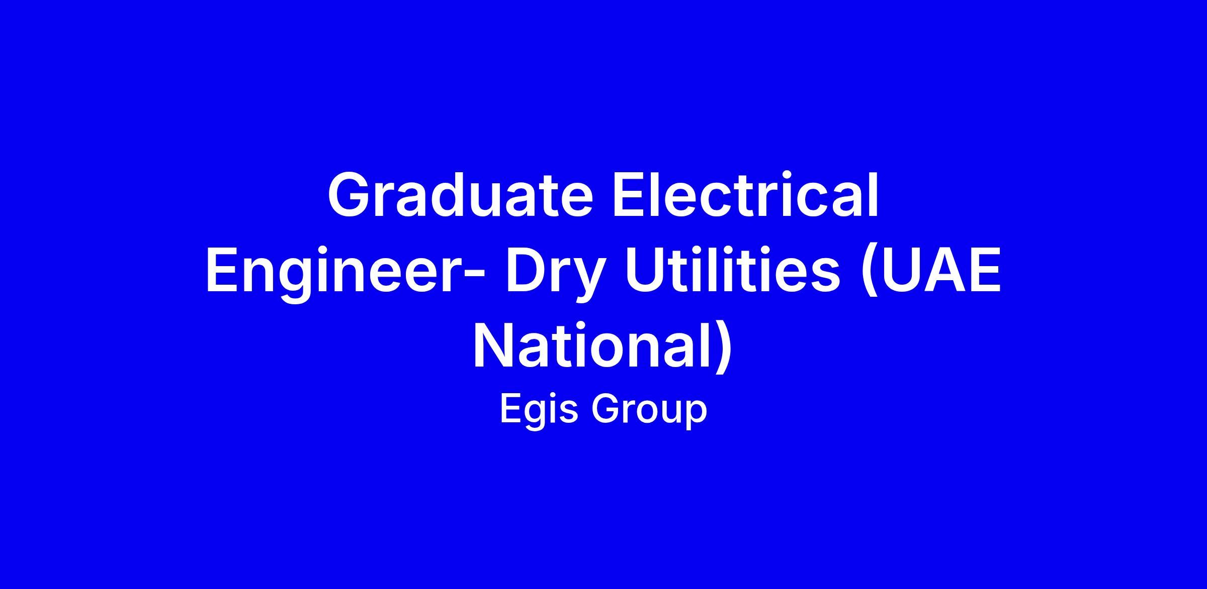 We are seeking a highly motivated Graduate Electrical Engineer specializing in Dry Utilities to join our dynamic team in Dubai, United Arab Emirates. As a UAE National, you will have the opportunity to contribute to the design and implementation of critical infrastructure projects while developing your skills in a supportive and innovative environment.