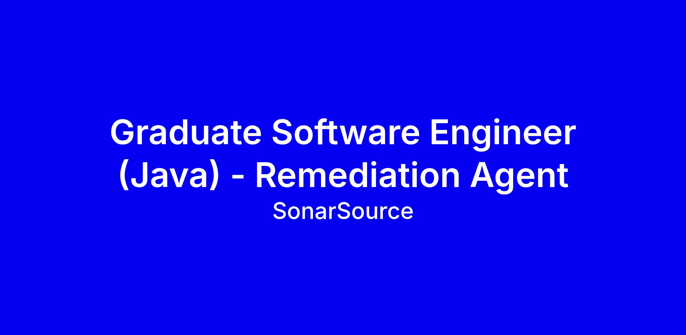 SonarSource is hiring a Graduate Software Engineer (Java) in Geneva for a full time hybrid role focused on the Unified Remediation Engine and autonomous remediation workflows. You will implement backend services in Java and Python, help turn research ideas into production code, and contribute to scalable, observable cloud native systems while learning AWS and distributed architectures. The ideal candidate has strong CS fundamentals, proficiency in Java or Python, curiosity about systems and AI/LLMs, and an analytical mindset. To apply, tailor your resume to highlight backend projects, testing, CI/CD, and any AI experiments, show collaboration through code reviews, and align with Sonar values. Background checks apply and agency applications are not considered; Geneva in-office with hybrid options, and remote work available in some locations.