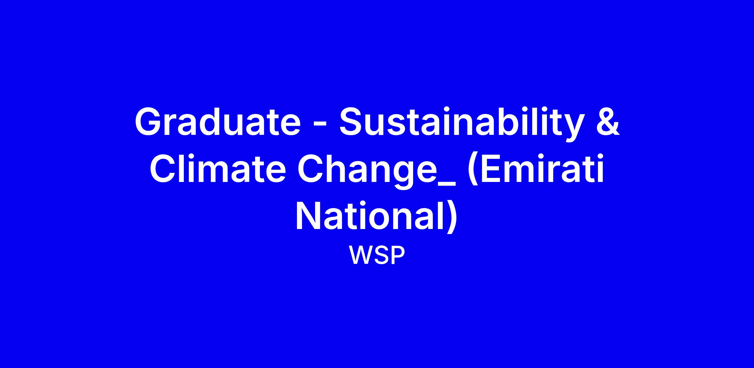 WSP is hiring a UAE National graduate in Sustainability & Climate Change to join the Health, Safety and Security function in Sharjah. You’ll support environmental assessments, sustainability audits, EIAs, and compliance reporting while researching trends and advising on green certifications. The ideal candidate holds a Bachelor’s in Environmental Science, Sustainability, Health & Safety or related field; no prior experience required, but relevant academic projects or internships help. LEED GA/AP or WELL AP, or plans to obtain within 3 months, are advantageous; modelling software knowledge is a plus. Strong communication, attention to detail, teamwork and analytical skills are essential. Apply with a tailored CV, note your accreditation plan, and readiness to work onsite.