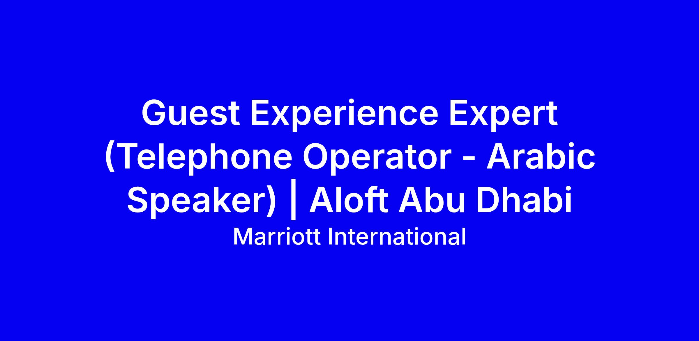 Marriott International is hiring a full-time onsite Guest Experience Expert at Aloft Abu Dhabi, serving as a telephone operator for Arabic speakers and guiding guests through their stay with a memorable, guest-centered approach. You will handle operational duties, guest requests, reports, share local highlights, and assist with loading and unloading luggage while moving around the property. The role requires standing or walking for long periods and lifting up to 50 pounds alone (100 pounds with assistance). Education is a high school diploma or GED; no related work experience or supervisory duties are required. To apply, emphasize hospitality mindset, Arabic fluency, reliability, professionalism, and a willingness to learn and comply with policies.