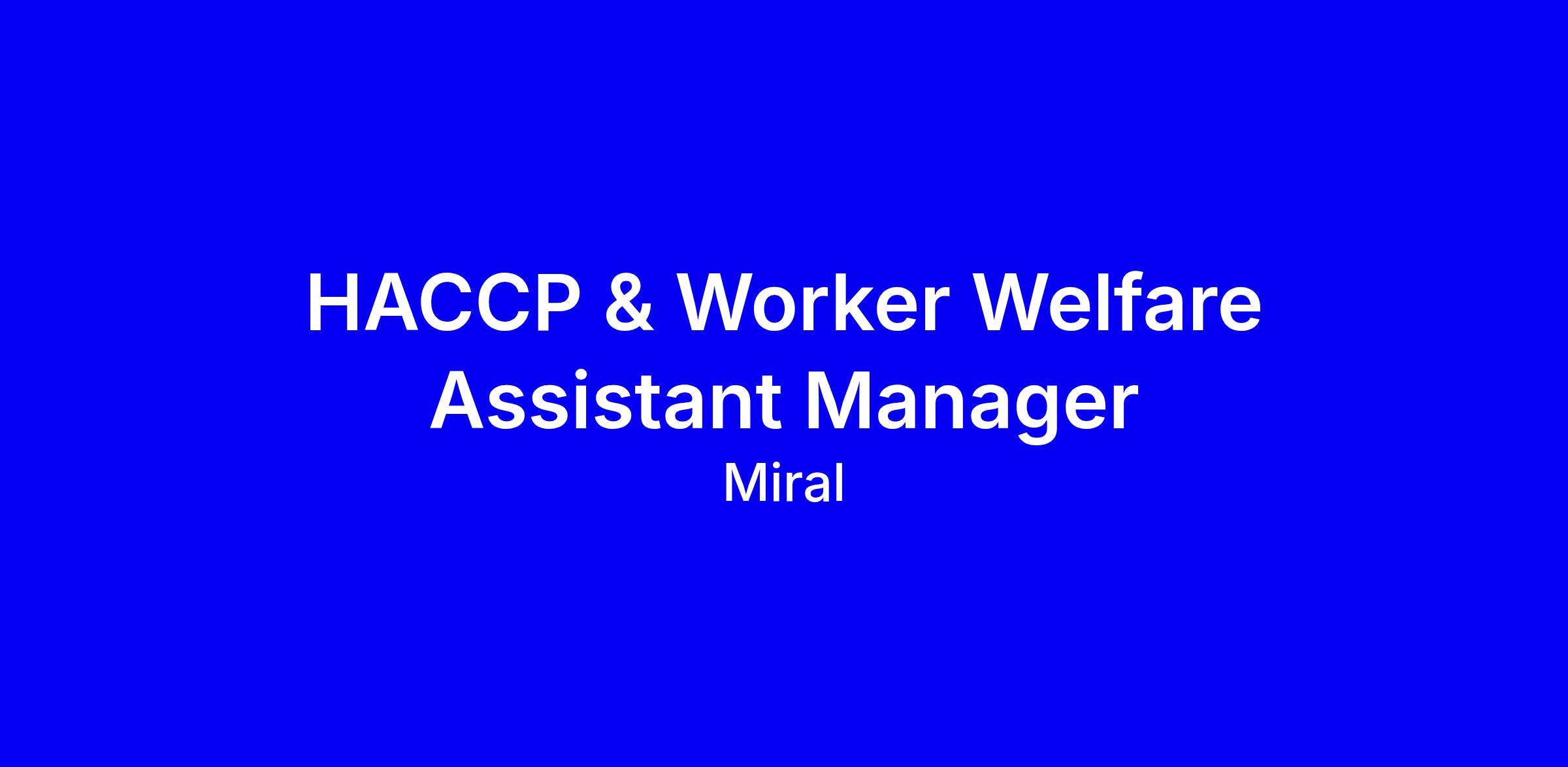 We are seeking a committed and detail‑oriented HACCP & Worker Welfare Assistant Manager to support the effective delivery of our organisation’s food safety and worker welfare programmes across operations, suppliers, and contractors. This role focuses on operational assurance through inspections, audits, monitoring, data management, and follow‑up of corrective actions.