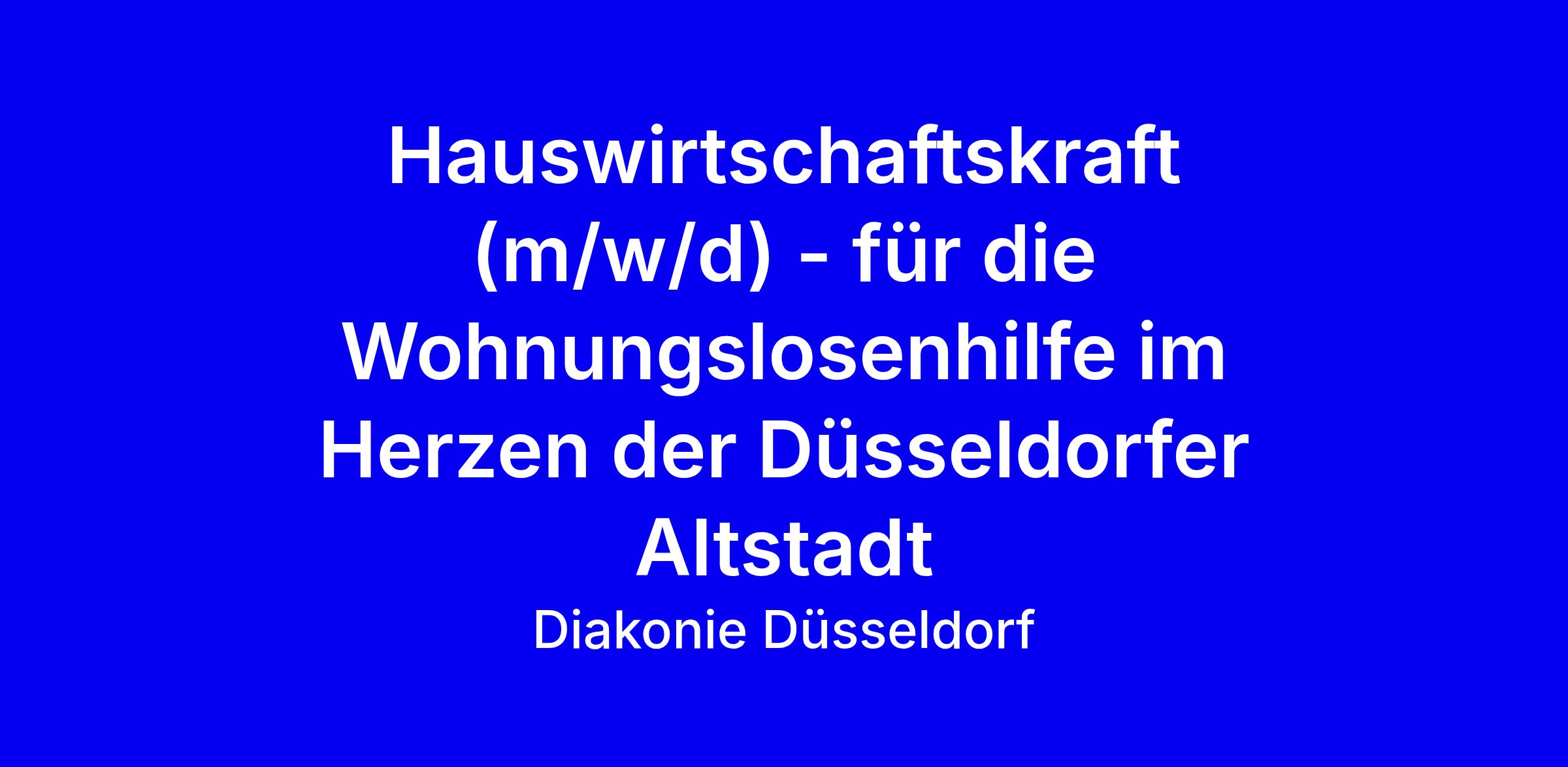 Die Diakonie Düsseldorf sucht zum 1. April 2026 eine unbefristete Vollzeit-Hauswirtschaftskraft (39 Wochenstunden) für die Tagesstätte Shelter im Herzen der Düsseldorfer Altstadt, eine ambulante Einrichtung für wohnungslose und armutsbetroffene Menschen. Zu Ihren Aufgaben gehören Service und Küche, die Zubereitung warmer und kalter Speisen, die Umsetzung der HACCP-Hygienestandards sowie Planung, Bestellung, Einkauf und Lagerung von Lebensmitteln. Gesucht wird eine Fachkraft mit abgeschlossener Ausbildung zur Hauswirtschaft oder Koch oder entsprechender Berufserfahrung, die auch samstags oder feiertags flexibel arbeitet, Freude am Austausch mit internationalen Besucherinnen und Besuchern hat und selbständig sowie im Team gut agiert. Bewerben Sie sich über den Link Jetzt bewerben; Bewerbungen von Menschen mit Behinderungen werden bevorzugt berücksichtigt; Vorteile wie BAT-KF, Sozialleistungen und Gesundheitsmanagement runden das Angebot ab. Ansprechpartnerin ist Clarissa Schruck.