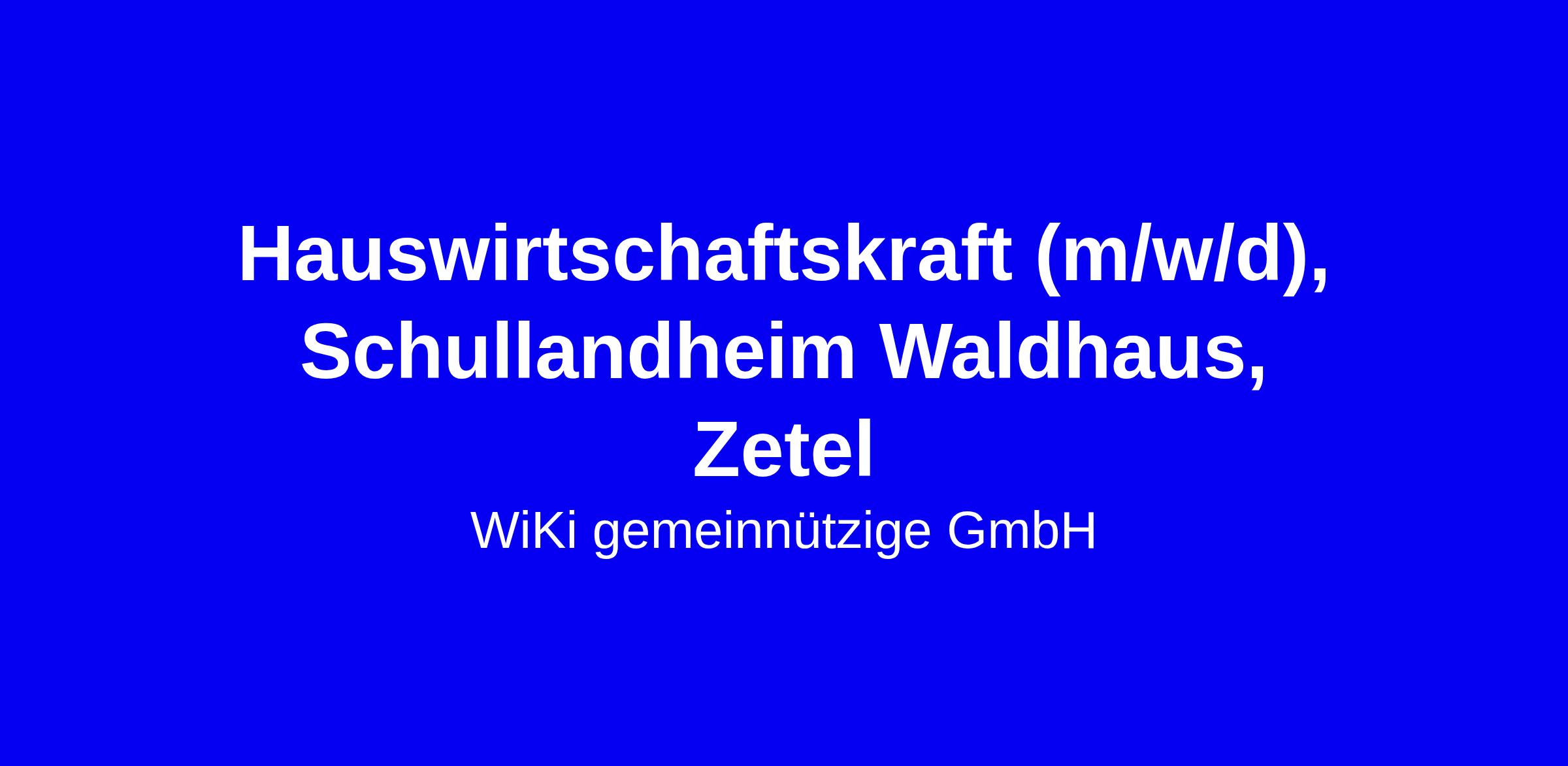 Für unser Schullandheim Waldhaus in Zetel suchen wir eine engagierte hauswirtschaftliche Assistenzkraft für die Zubereitung von Mahlzeiten, sonstige Küchenarbeiten und Reinigungstätigkeiten.