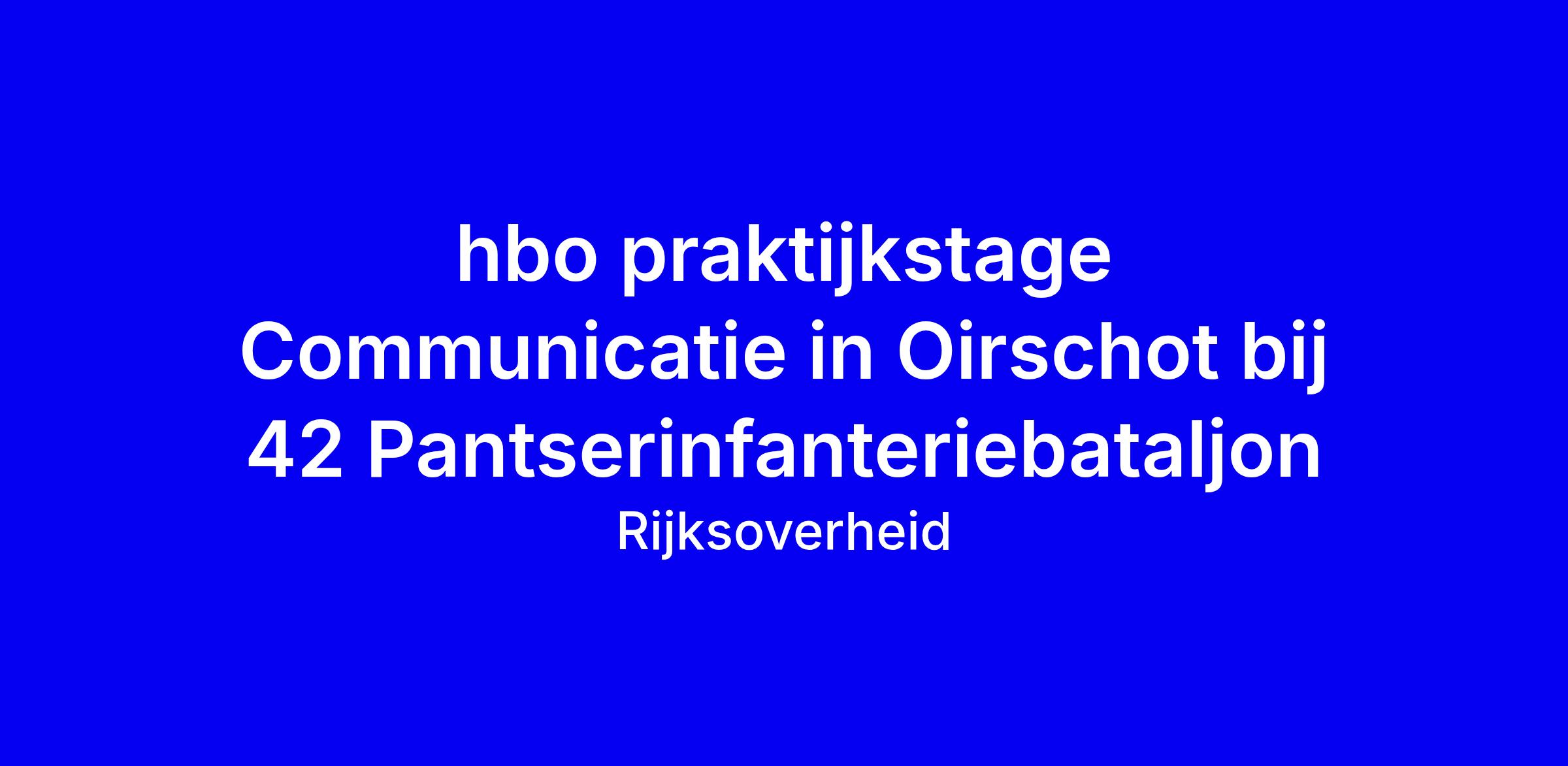 Deze HBO Communicatie stage bij 42 Pantserinfanteriebataljon Limburgse Jagers in Oirschot biedt 32-38 uur per week en een stagevergoeding tot €775 bij 38 uur. Je ondersteunt social media beheer op Instagram en Facebook, bedenkt nieuwe content en schrijft teksten voor speeches en het magazine De Limburgse Jager, terwijl je meeschuift achter de schermen van een parate eenheid van de Landmacht en zo bijdraagt aan zichtbaarheid. Belangrijk zijn sterke schrijfvaardigheden, creativiteit, affiniteit met social media en initiatiefrijk zijn. Reageer zo snel mogelijk;periode in overleg; mogelijk huisvesting op de kazerne en Defensie-voordelen. Houd rekening met een veiligheidsonderzoek (VGB) van 6-8 weken; solliciteer via Kap Schoonbrood 0643044108 of [email protected] met motivatie, CV en schrijfvoorbeelden.