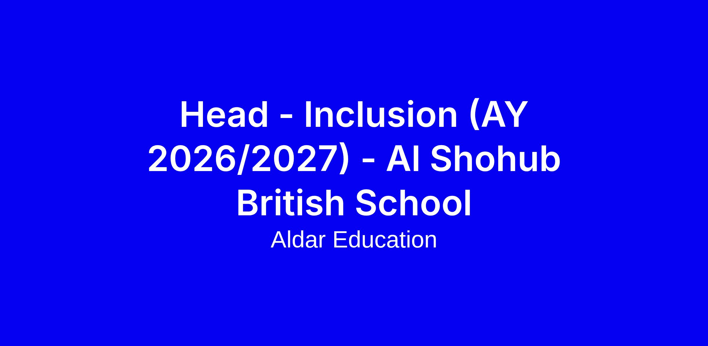 Aldar Education are currently seeking a Head of Inclusion - (AY 2026/2027) for Al Shohub Private School to support our growing family of owned and operated schools in the UAE.