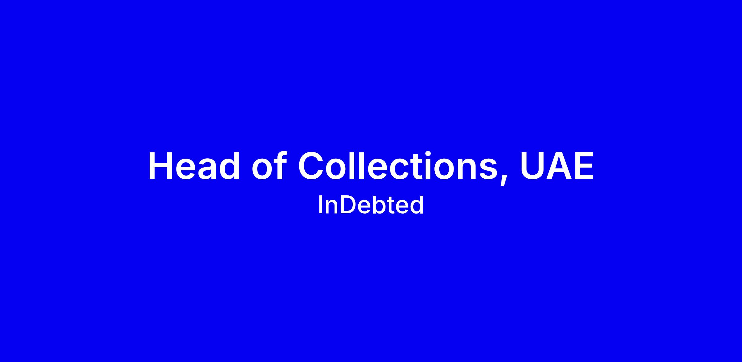 About InDebted: InDebted provides future-thinking organisations with products and solutions to support overdue consumers through debt. Backed by technology with a human touch, we use machine learning and AI to personalise the collections journey and champion positive customer experiences — all so we can change the world of consumer debt for good.Founded in Australia, today we're a team of over 300 people living and working around the world. We're rapidly expanding throughout North America, the United Kingdom, Europe, Latin America and the Middle East. We’re a $50m revenue (and growing) organisation, having recently completed our Series C funding round, backed by leading investors such as Airtree. Now is an exciting time to join the team as we continue to make the experience of debt resolution smoother, and more human.About the Role: The Head of Collections (UAE) owns the economic performance, compliance posture, and scalability of InDebted’s collections operations in the UAE.This is a builder-operator role for someone who treats collections as a capital allocation and optimisation problem. You are accountable for turning delinquency into predictable cash outcomes through disciplined execution, data-driven decisioning, and strict compliance in a highly regulated, relationship-sensitive market.This is not a legacy call-centre leadership role. It is a hands-on operator role with real ownership of outcomes, unit economics, and how results are delivered.You will design, run, and continuously optimise the UAE collections engine end to end.