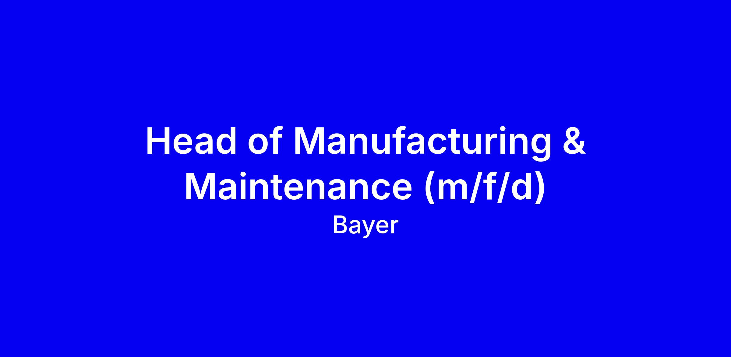 Bayer is looking for a Head of Manufacturing & Maintenance (m/f/d) to lead a cross-functional team of process experts, operators and technicians (~70 FTE) at the Grenzach-Wyhlen, Germany site. You will own non sterile and sterile production and aseptic fill operations, ensure reliable facility operations, maintenance programs and lifecycle assurance, and drive cross-functional product portfolio expansion and global technology transfers while upholding GMP, SOPs and HSE. The role emphasizes operational excellence, planning, automation and digitalization through Factory of the Future initiatives, and leadership as a VACC Coach. To apply, tailor your resume to show large-team leadership in pharma, proven process improvements, and fluency in English and German, with examples of compliance, matrix collaboration, and successful tech transfers.