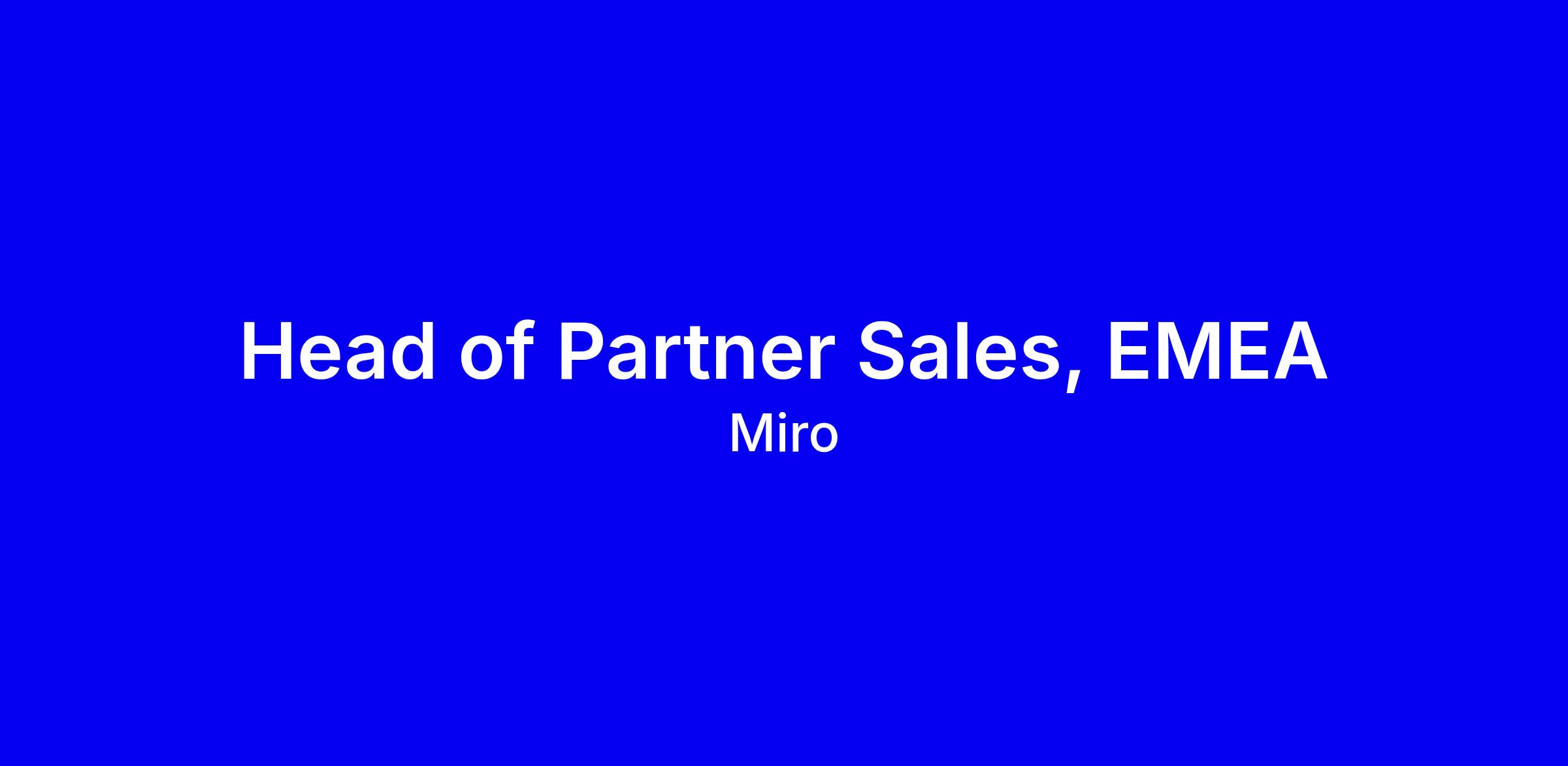 Miro is looking for Head of EMEA Partner Sales to build and execute a scalable EMEA partner GTM across distribution, reseller, alliance and solution partners, leveraging the global sales organization to deliver value to customers, partners, and developers. You will recruit and lead a regional team, drive partner enablement, marketing campaigns, executive relationships, and demand generation while collaborating with sales, product, marketing and operations. The role calls for a proven SaaS channel leader with 2+ years managing a quota-carrying partner team, success in closing opportunities via partners, and comfort with 25% travel. To apply, tailor your resume to show regional strategy impact, quantified revenue growth, and cross-functional leadership, and highlight readiness for a hybrid London-based role.