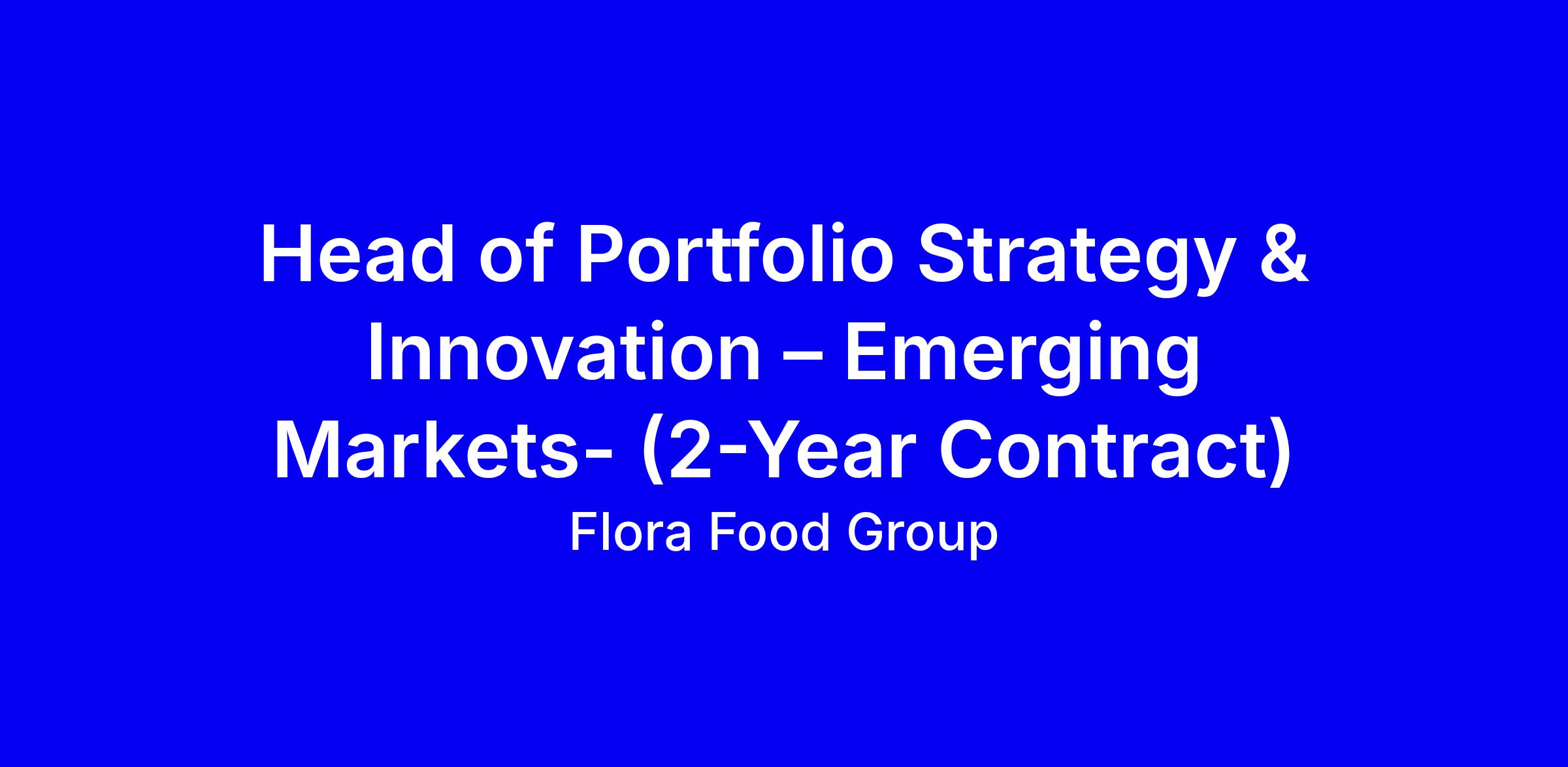 Flora Food Group seeks a visionary Head of Portfolio Strategy and Innovation for Emerging Markets, a two-year Dubai contract with a hybrid arrangement. The role owns the Emerging Markets portfolio and roadmap, identifies white space, and builds a pipeline across core, adjacent and breakthrough categories, grounded in consumer insights and testing. You will lead end-to-end innovation across R&D, Supply Chain, Sales, Finance and Regulatory, acting as the commercial lead on launches and shaping positioning, packaging, pricing and claims. The ideal candidate has 14+ years in CPG, deep Emerging Markets experience, strong storytelling and executive influence, and willingness to travel up to 20%. Apply at florafoodgroup.com by February 9, 2026; Flora welcomes applicants who may not meet every bullet.