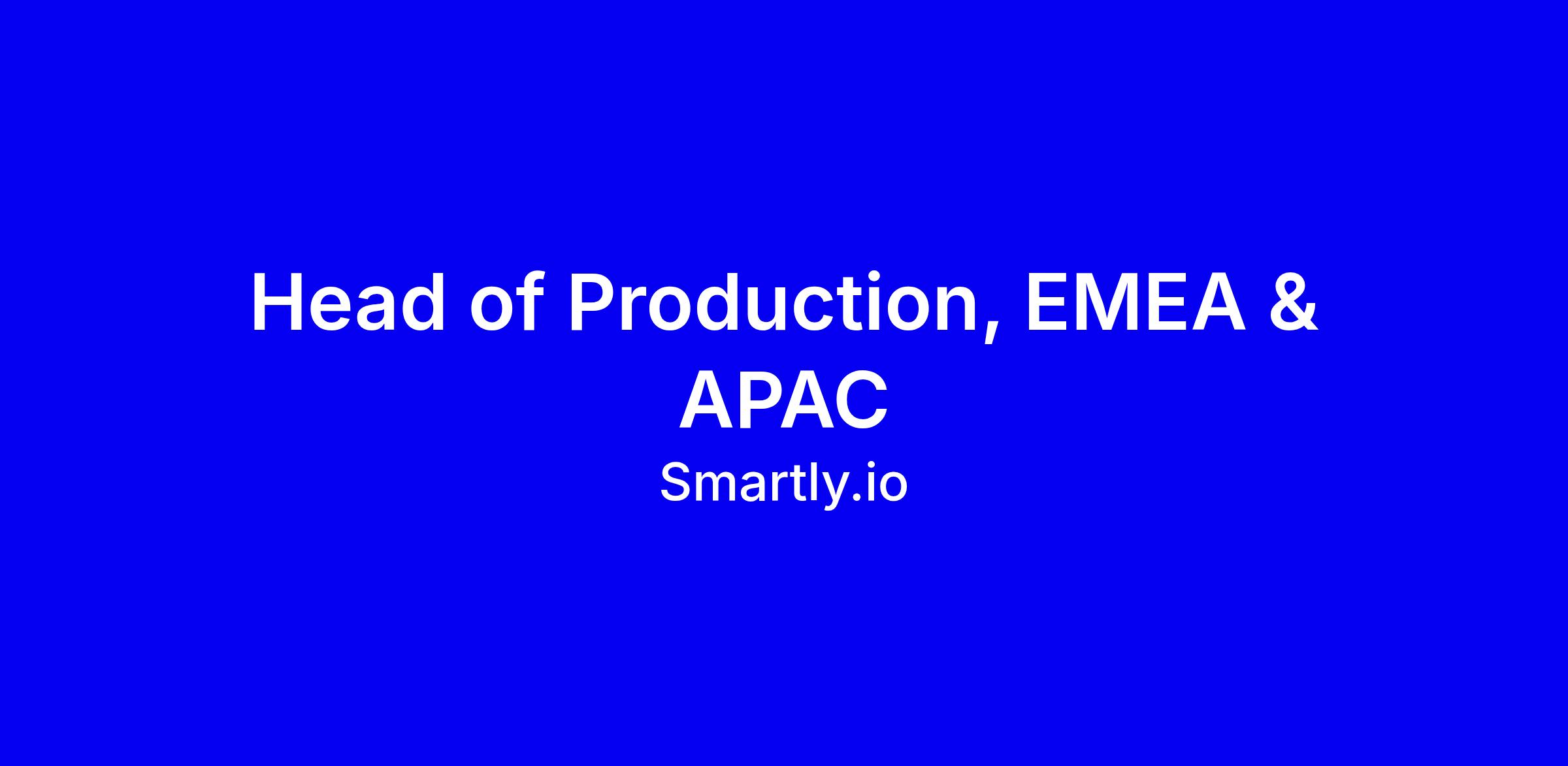 Smartly.io is seeking an experienced, hands-on Head of Production for EMEA and APAC to lead end-to-end creative production across Europe, the Middle East and Africa and Asia Pacific. You will own delivery quality, timelines and budgets for large scale, performance driven campaigns, partner with global creative leadership, and directly manage the SparkWorks Creative team while collaborating with Sales, Customer Success, Product and Tech. The ideal candidate brings 8+ years in creative production or delivery leadership, proven multi market people leadership, a sharp commercial sense for scoping and pricing, and a systems mindset for scalable improvement. To apply, showcase measurable outcomes from high volume production, client facing successes, and your ability to work onsite three days a week, with a concise note tying your experience to Smartly’s hybrid culture and values.