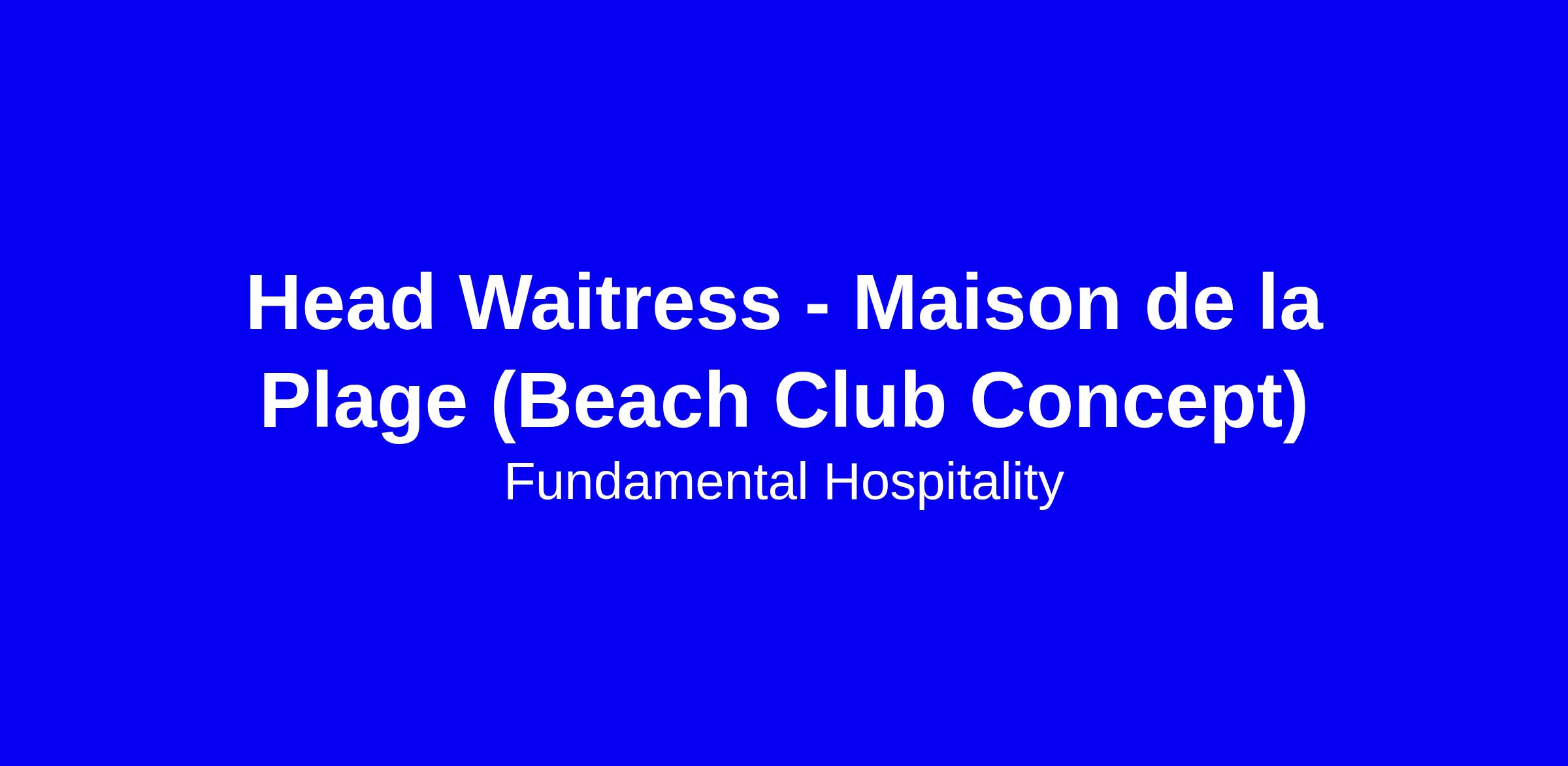Fundamental Hospitality is looking to hire an experienced Head Waitress to join our team at Maison De La Plage Beach Club in Dubai.