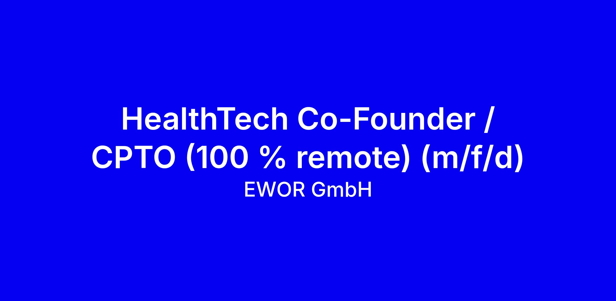 EWOR is seeking a HealthTech Co-Founder / CPTO who will own and scale a startup with remote work. You can be paid a salary while you build or opt for up to €500k in funding, with weekly sparring with unicorn founders and access to the network of founders and investors. You’ll receive hiring and distribution support to reach product-market-fit and fuel growth, plus coaching to prepare for multi-million euro fundraisings and to build a sales and marketing engine. Requirements: based in Europe or the Americas or open to relocation, take full responsibility to reach €100M+ in revenue, and fluent English. Highlight your entrepreneurial track record and a clear HealthTech plan in your application.