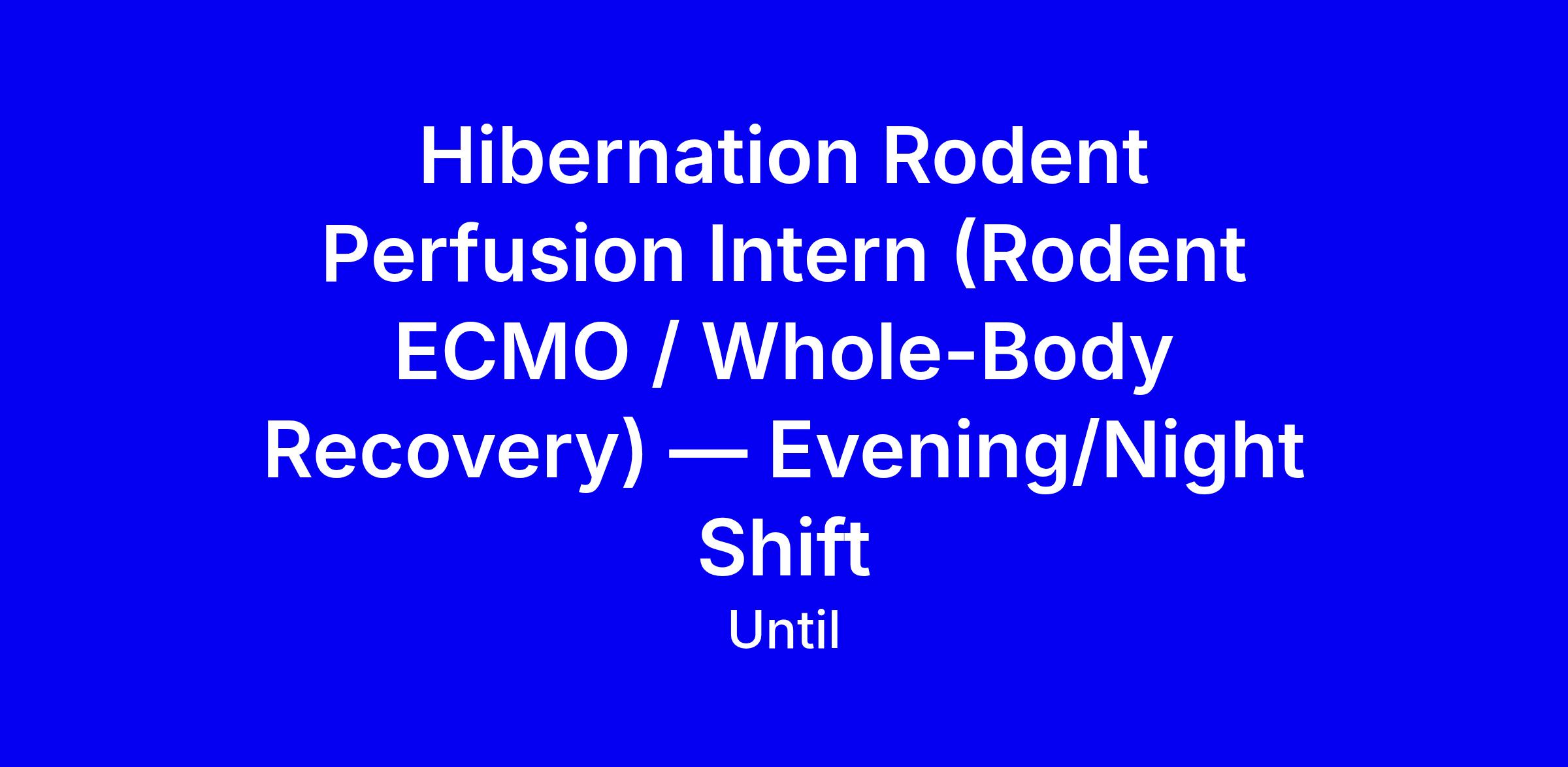 Until is a moonshot biotech company pursuing organ-scale reversible cryopreservation, and this internship centers on supporting rodent ECMO perfusion and whole-body function recovery experiments during evening and night shifts in the Bay Area. You’ll be the critical second set of hands, continuously scanning for failure modes while handling anesthetized animals and tracking multiple physiological and circuit data streams, collecting samples, running frequent blood gases, and documenting interventions in real time. This role rewards precise attention to detail, disciplined note-taking, and calm situational awareness under pressure. To apply, emphasize 1+ year rodent research with in vivo exposure, data monitoring and clear communication, reliability on late shifts, and a collaborative mindset in a fast growing biotech setting.