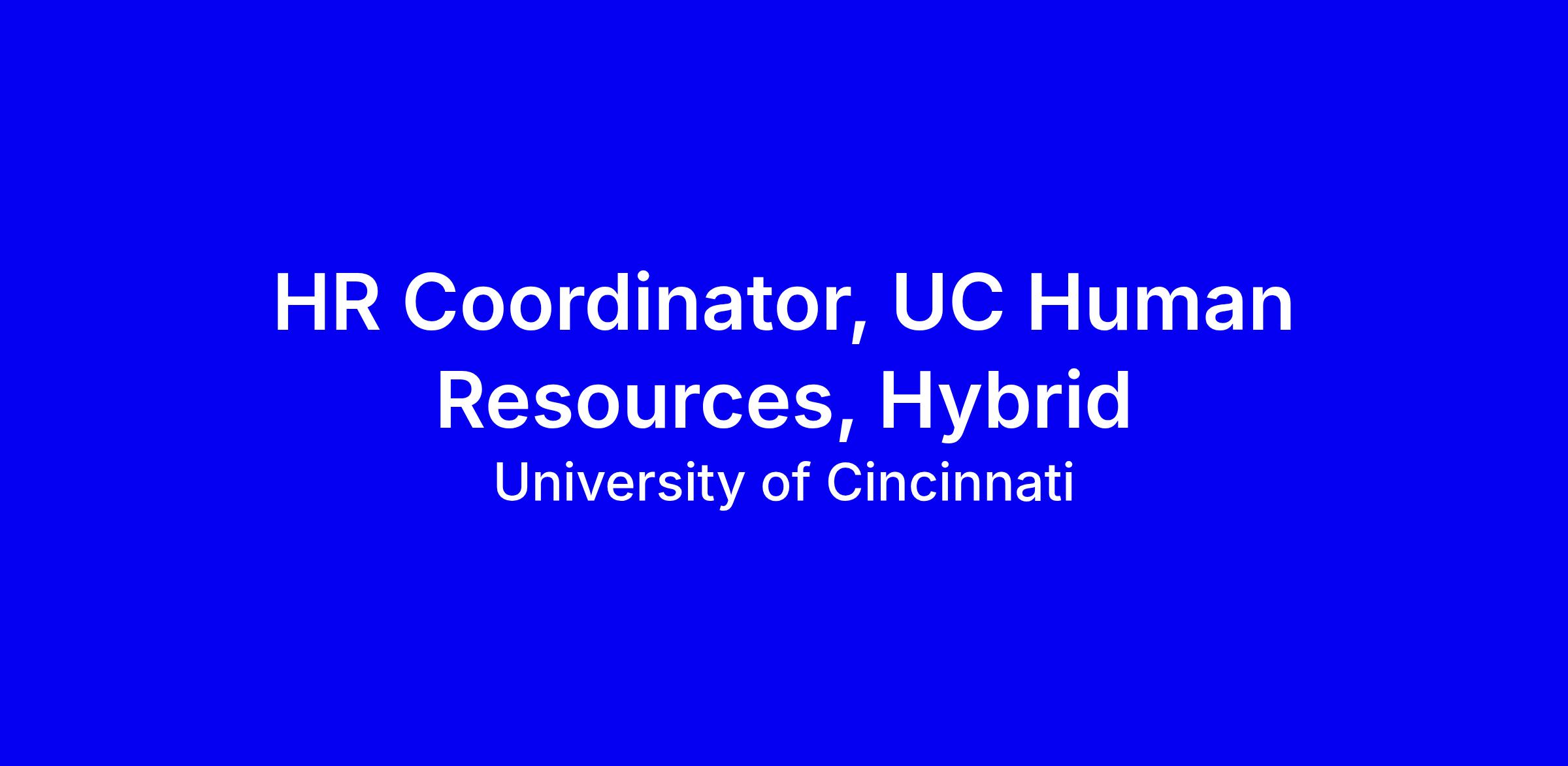 UC is seeking an HR Coordinator for its Human Resources team in Cincinnati, a hybrid role that supports an operating unit by coordinating HR processes, partnering with Talent Acquisition on postings and selections, assisting timekeeping and payroll, analyzing HR data for quality improvements, supporting policy compliance and project management, and supervising staff. A bachelor’s degree is required, or four years of experience in lieu. Internal UC employees must apply via SuccessFactors; external candidates apply through the UC applicant portal. Highlight experience in recruitment, payroll, HR data analysis, and policy implementation, and demonstrate collaboration and initiative. Benefits include tuition remission, retirement options, generous leave, and work-life balance.